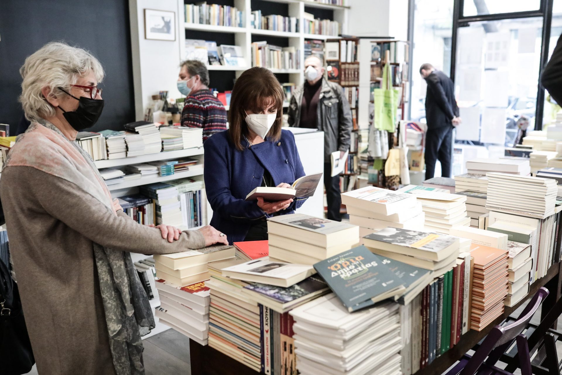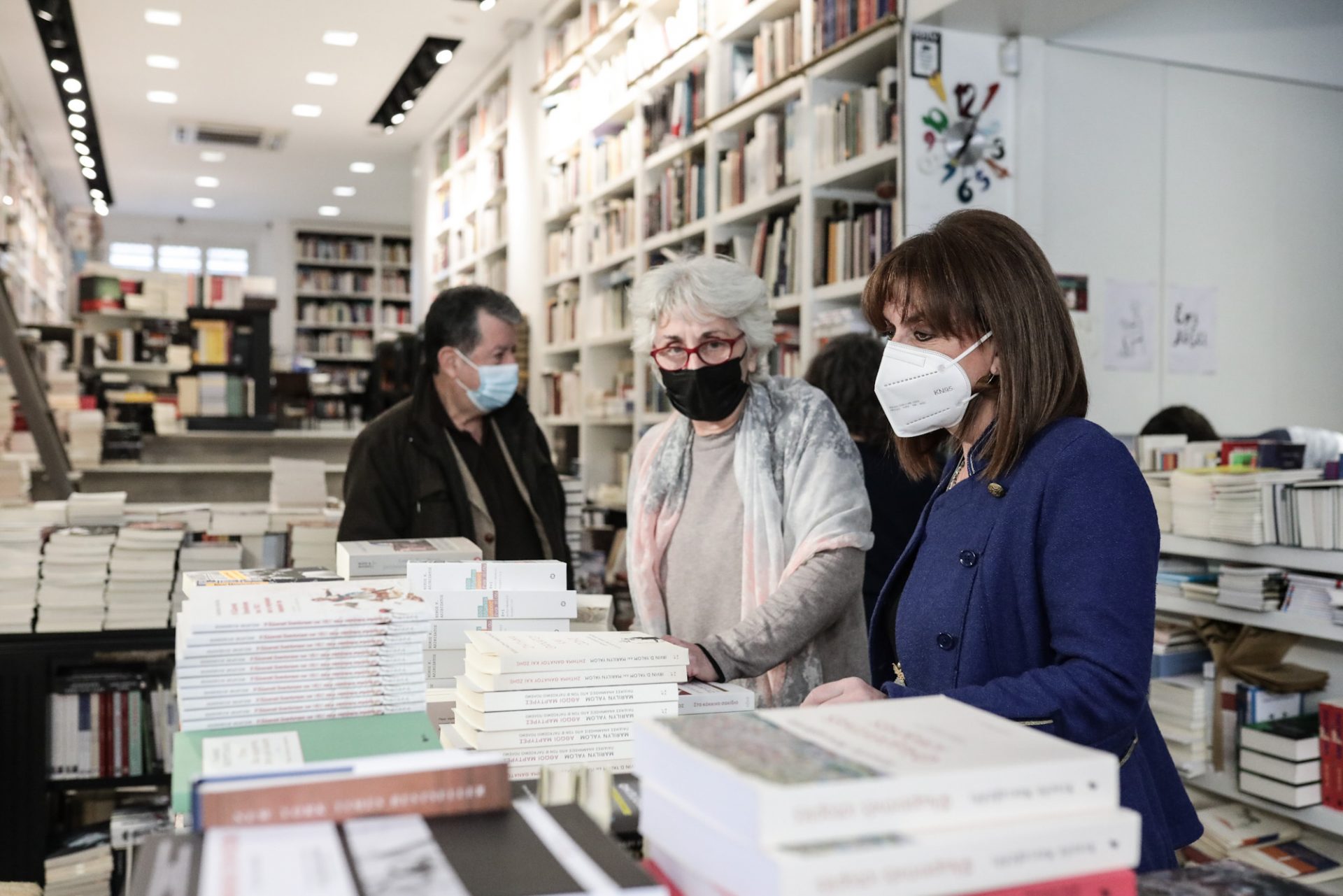 Η Πρόεδρος της Δημοκρατίας Κατερίνα Σακελλαροπούλου επισκέφθηκε γνωστό βιβλιοπωλείο στην Ακαδημίας, αγόρασε βιβλία και αντάλλαξε ευχές με το προσωπικό και τους πελάτες.