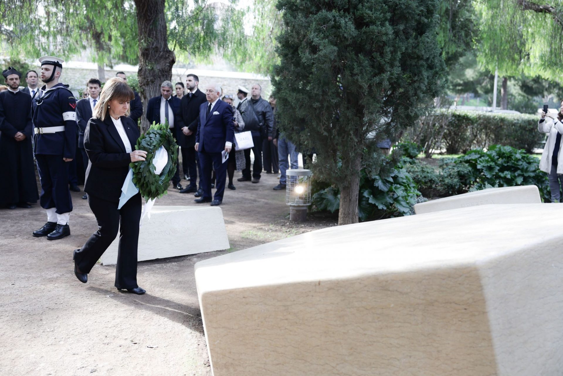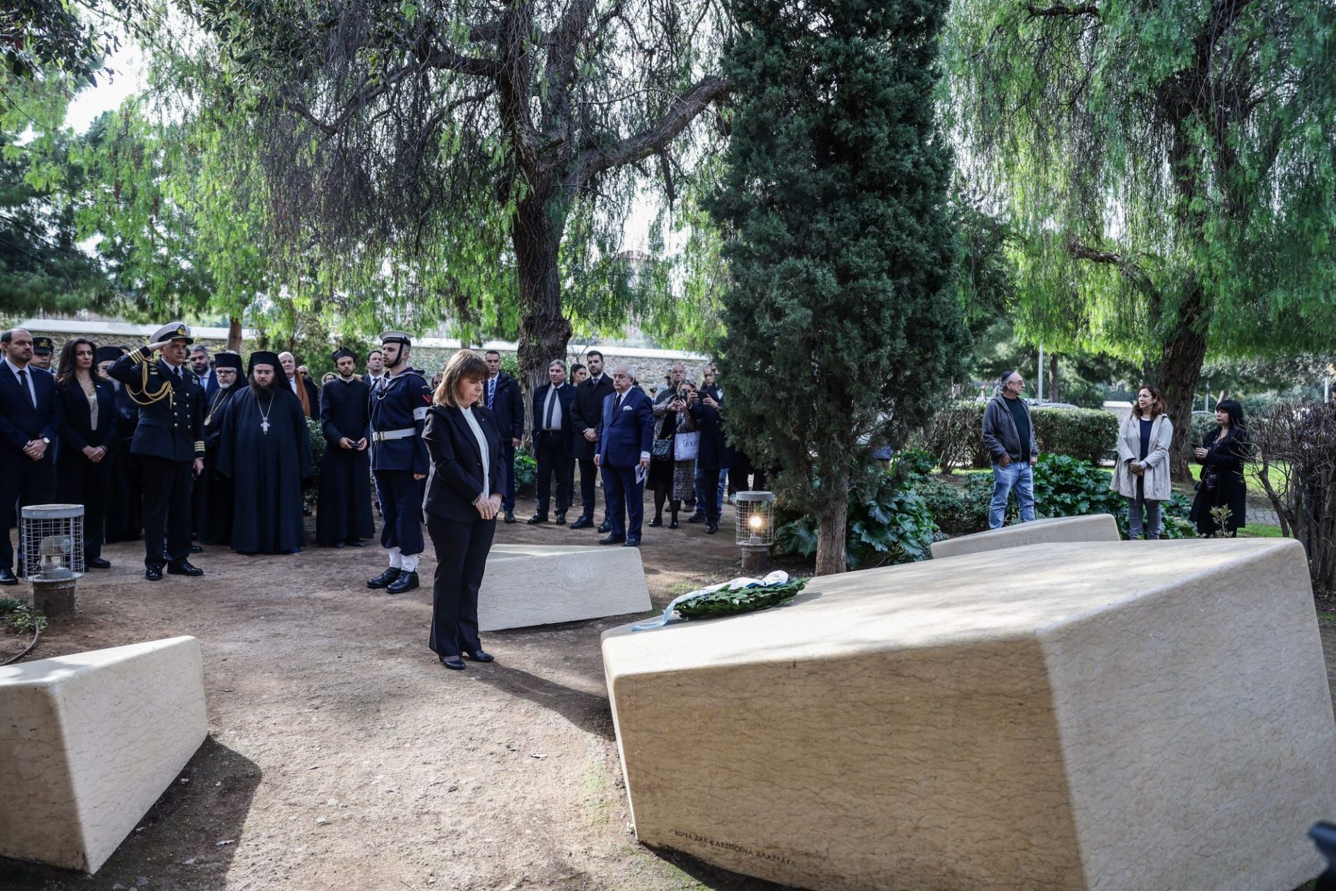 Η Πρόεδρος της Δημοκρατίας Κατερίνα Σακελλαροπούλου, με αφορμή την Ημέρα Μνήμης Ελλήνων Εβραίων Μαρτύρων και Ηρώων του Ολοκαυτώματος, κατέθεσε στεφάνι στο Μνημείο Ολοκαυτώματος, στο Θησείο.