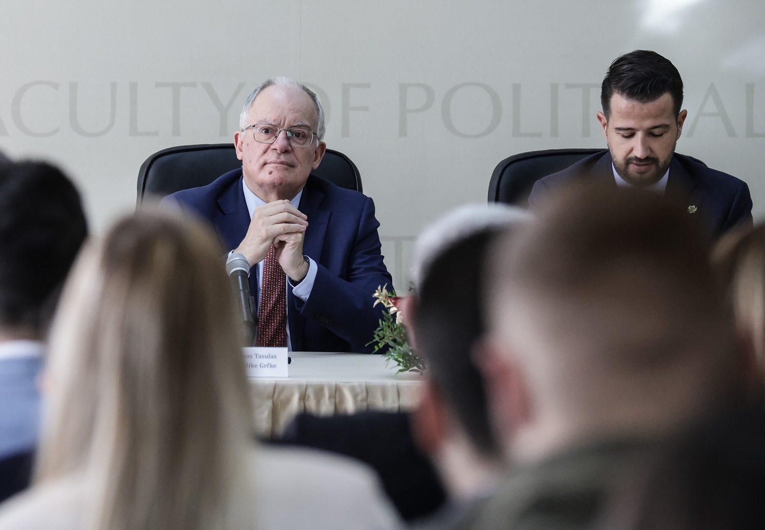 Ακολούθησαν ερωτήσεις από τους φοιτητές της Σχολής Πολιτικών Επιστημών προς τους δύο Προέδρους για την ενταξιακή διαδικασία του Μαυροβουνίου, τη γενικότερη κατάσταση στα Βαλκάνια και την υποστήριξη που η Ελλάδα προσφέρει στο Μαυροβούνιο στην πορεία προς την ένταξη στην Ε.Ε.