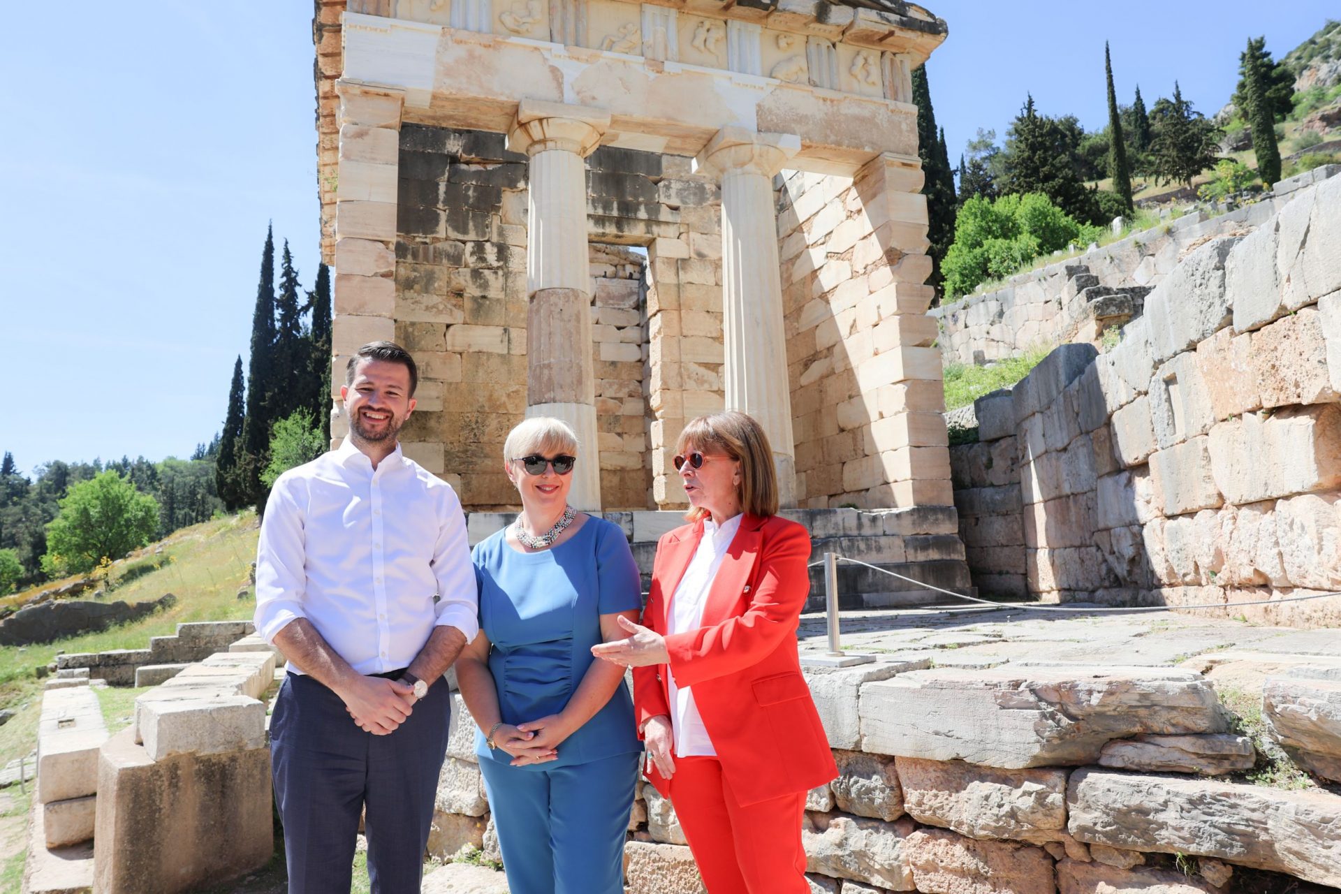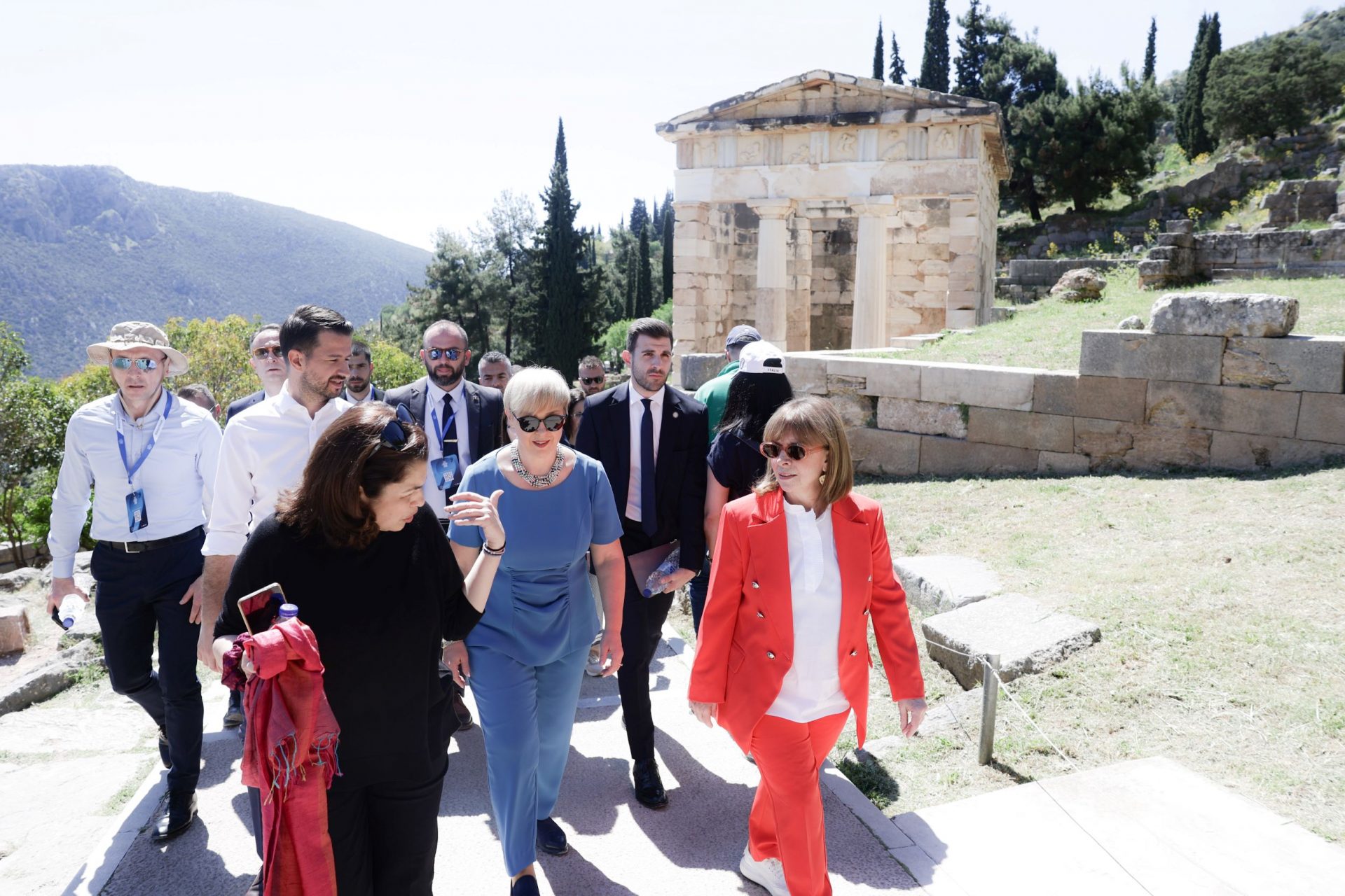 Στη συνέχεια, η Πρόεδρος της Δημοκρατίας ξεναγήθηκε μαζί με την Πρόεδρο της Δημοκρατίας της Σλοβενίας Nataša Pirc Musar και τον Πρόεδρο του Μαυροβουνίου Jakov Milatović στο Μουσείο και στον αρχαιολογικό χώρο των Δελφών.