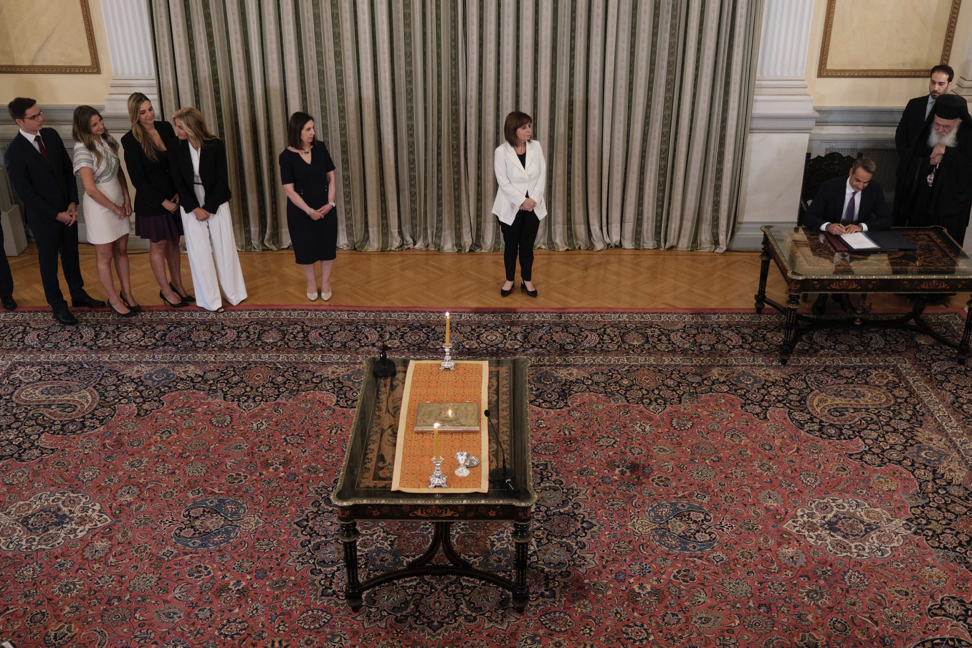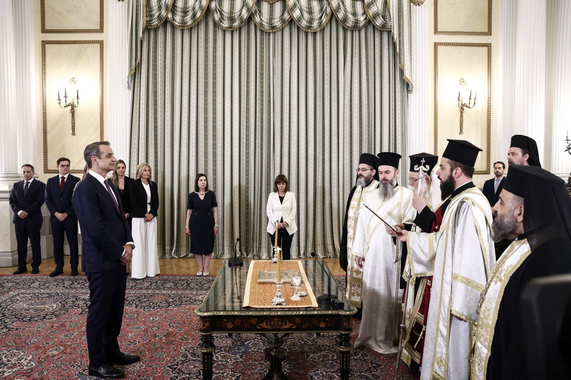 Ενώπιον της Προέδρου της Δημοκρατίας Κατερίνας Σακελλαροπούλου ορκίσθηκε από τον Αρχιεπίσκοπο Αθηνών και πάσης Ελλάδος Ιερώνυμο ως Πρωθυπουργός ο Κυριάκος Μητσοτάκης, Πρόεδρος της Νέας Δημοκρατίας.