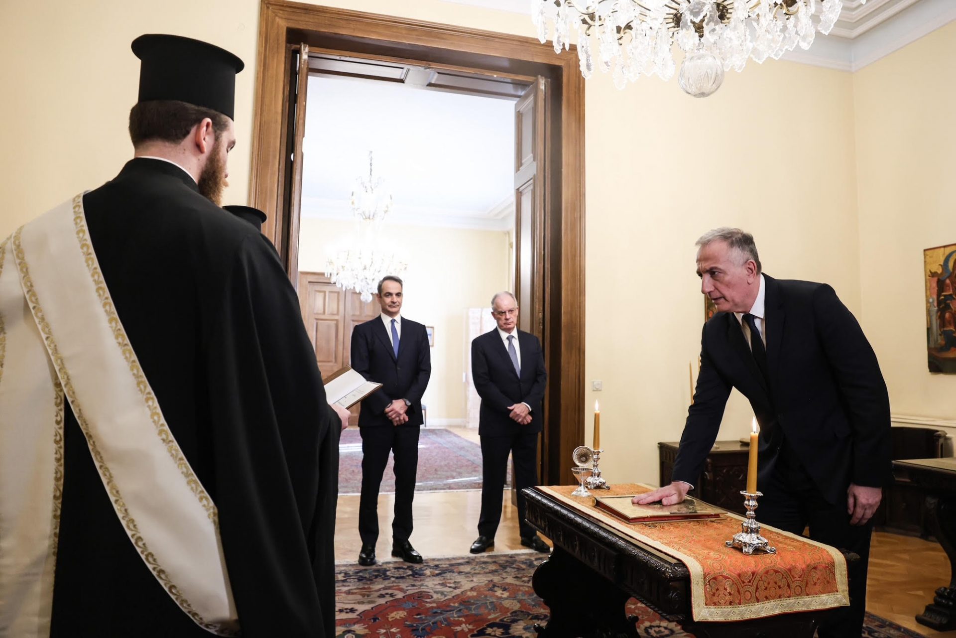 Ενώπιον του Προέδρου της Δημοκρατίας Κωνσταντίνου Αν. Τασούλα, και παρουσία του Πρωθυπουργού Κυριάκου Μητσοτάκη, ορκίσθηκε από τον Αρχιγραμματέα της Ιεράς Συνόδου, Αρχιμανδρίτη Ιωάννη Καραμούζη, ο Σταύρος Καλαφάτης, ως Υφυπουργός Ανάπτυξης.