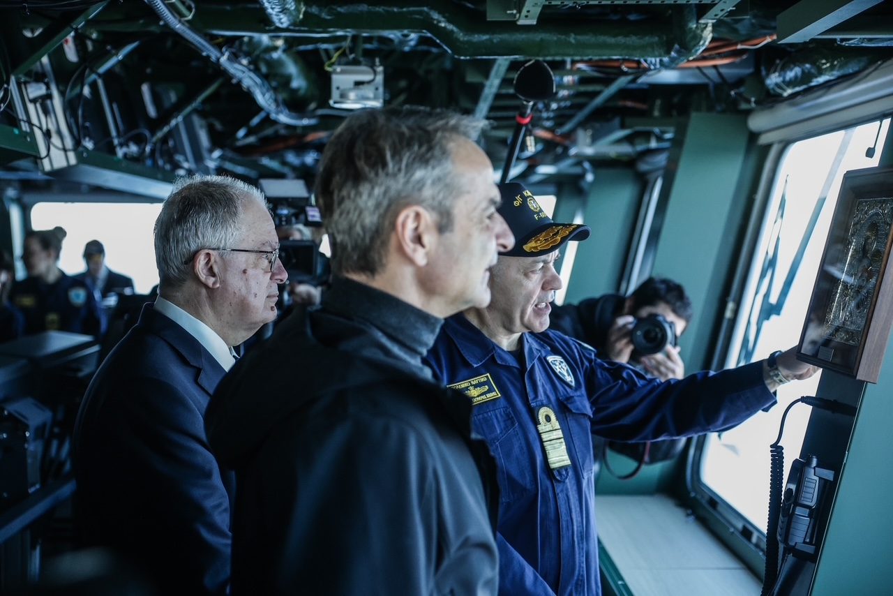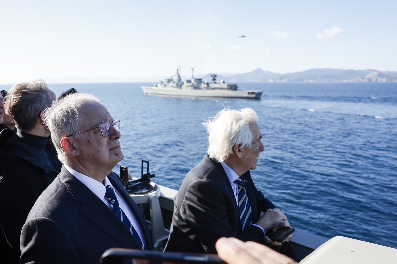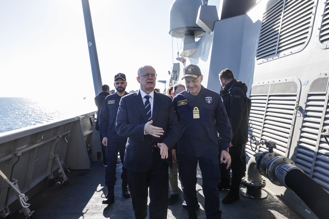 Ο Πρόεδρος της Δημοκρατίας Κωνσταντίνος Αν. Τασούλας παρέστη στην εν πλω τελετή υποδοχής της φρεγάτας «ΚΙΜΩΝ», παρουσία του Πρωθυπουργού Κυριάκου Μητσοτάκη, του Υπουργού Εθνικής Άμυνας Νίκου Δένδια και του Υφυπουργού Εθνικής Άμυνας Θανάση Δαβάκη.