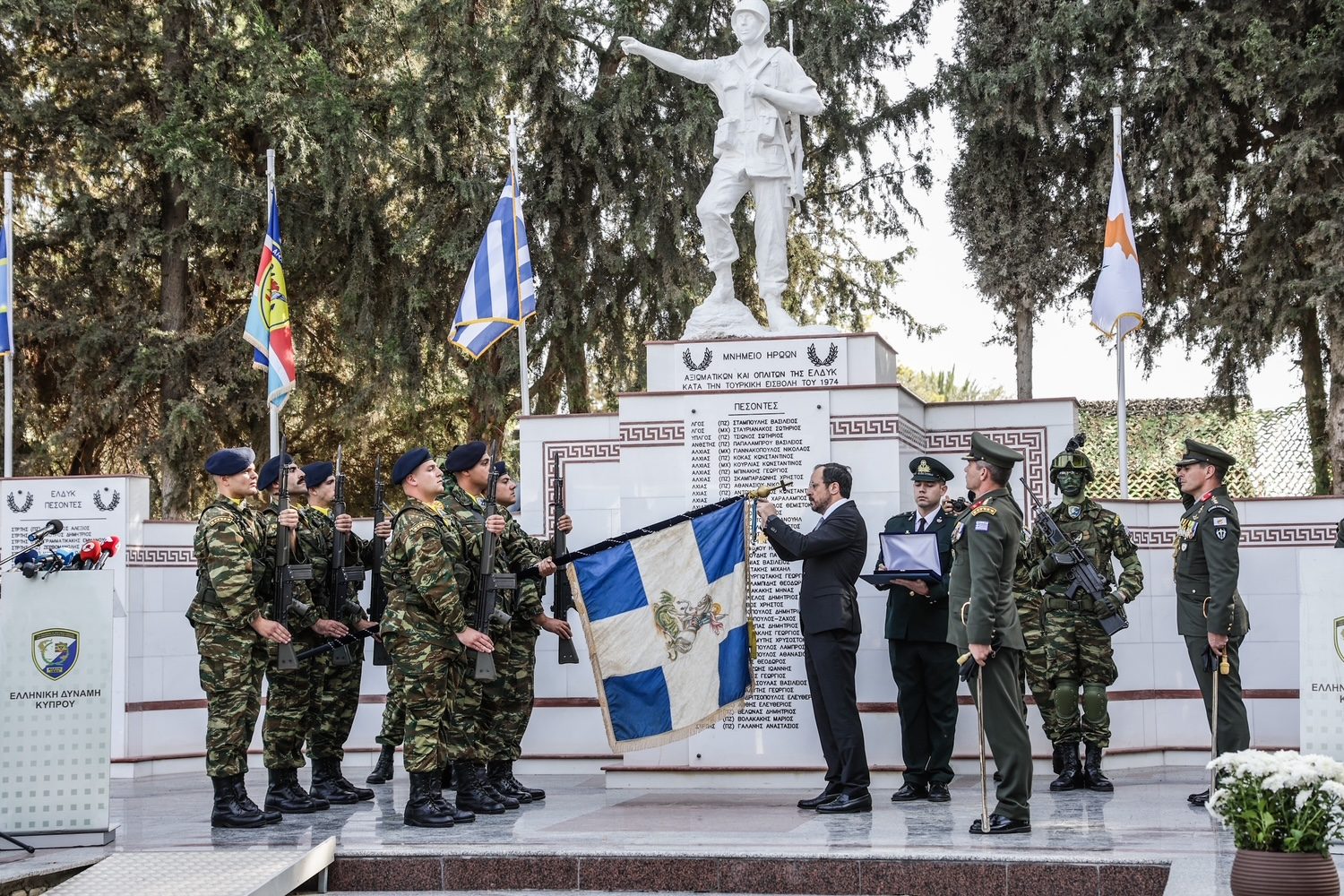 Η σημερινή τελετή είναι μια στιγμή αυτογνωσίας. Μας θυμίζει ποιοι είμαστε, τι μας ενώνει και ποιον δρόμο οφείλουμε να ακολουθήσουμε. Ας κρατήσουμε, λοιπόν, τη σημαία της ΕΛΔΥΚ ψηλά — όχι μόνο ως στρατιωτικό λάβαρο, αλλά και ως φάρο αξιών: της ελευθερίας, της δημοκρατίας και της ειρήνης. Γιατί η σημαία αυτή δεν ανήκει μόνο σε όσους την κράτησαν στο πεδίο της μάχης. Αυτή η σημαία που σήμερα δέχεται την ύψιστη τιμή της Κυπριακής Δημοκρατίας ανήκει σε κάθε Ελλαδίτη και σε κάθε Κύπριο που πιστεύει πως το δίκαιο μπορεί να νικήσει την αυθαιρεσία, πως η ενότητα μπορεί να υπερβεί τη διαίρεση, πως το μέλλον δεν είναι η κατοχή αλλά η ειρήνη και η συνεργασία.