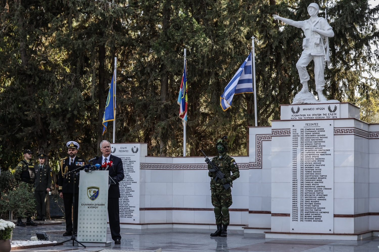 Σήμερα, λοιπόν, δεν τιμούμε απλώς τον ηρωισμό, την αυταπάρνηση και τη θυσία των ανδρών της ΕΛΔΥΚ. Ανανεώνουμε έναν υπέρτατο όρκο τιμής: να σταθούμε αντάξιοι εκείνων που έπεσαν, εκείνων που αγνοούνται ακόμα. Να διατηρήσουμε ζωντανή τη φλόγα της ενότητας των δυνάμεων του Ελληνισμού και της αταλάντευτης προσήλωσης μας στο δίκαιο αγώνα για ελευθερία.