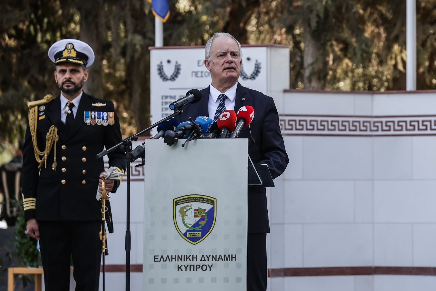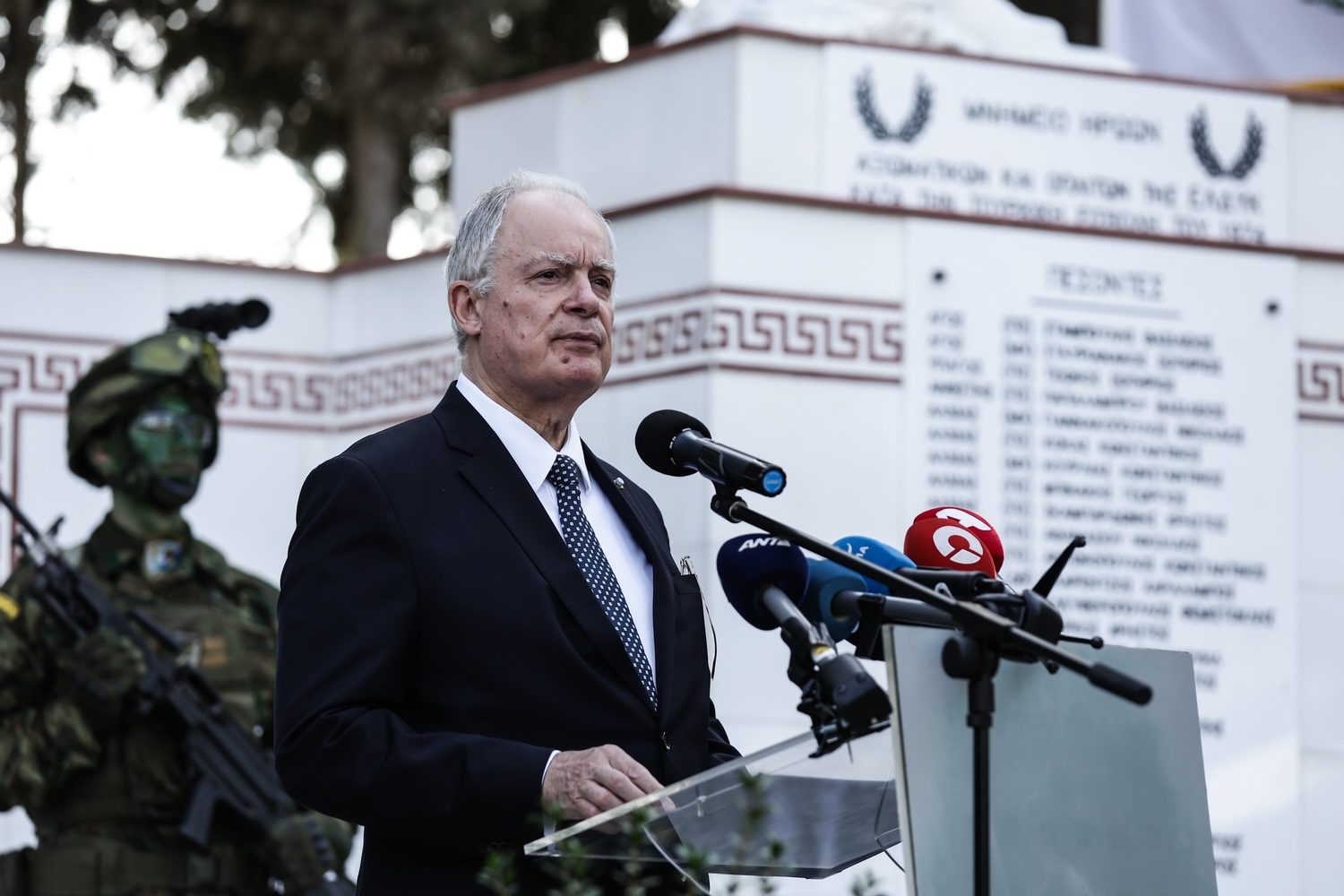 Τούτη τη συμβολική ημέρα, η Κυπριακή Δημοκρατία περιποιεί την ύψιστη τιμή στην Ελληνική Δύναμη Κύπρου, απονέμοντας τα Μετάλλια του «Προασπιστή της Ελευθερίας» και του «Ταξιάρχη του Αριστείου Ανδρείας» στην ένδοξη, αιματοβαμμένη σημαία της. Κύριε Πρόεδρε, εξ ονόματος του ελληνικού λαού, σας ευχαριστώ από καρδιάς για την πρωτοβουλία σας, εσάς και την Κυβέρνηση, αναφορικά με την ανάδειξη του ιστορικού ρόλου και την ηθική αναγνώριση της προσφοράς της ΕΛΔΥΚ στην προάσπιση της ελευθερίας και της ανεξαρτησίας του Κυπριακού Ελληνισμού.