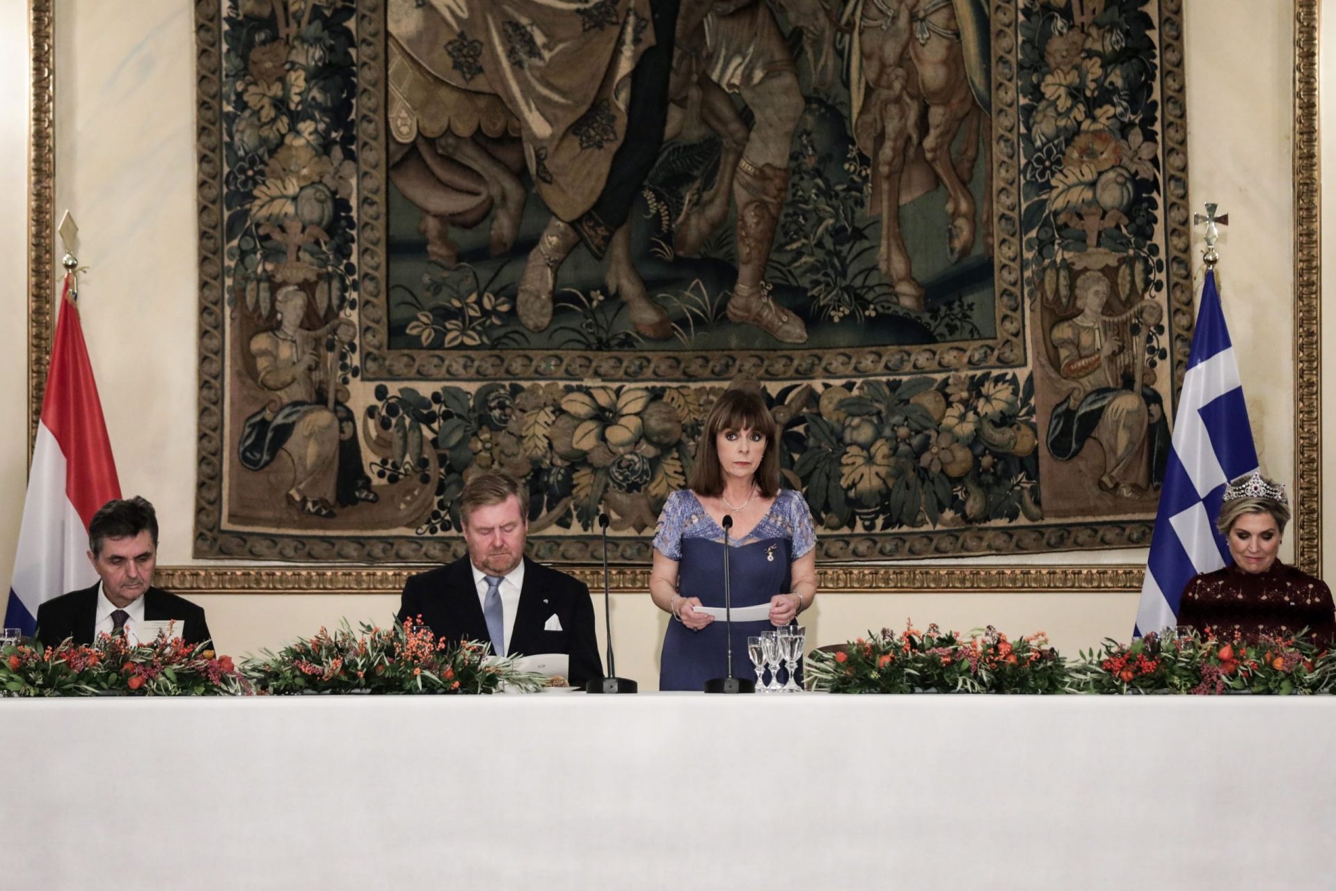 Είναι αλήθεια ότι διανύουμε μια εποχή ανασφάλειας και αβεβαιότητας και είναι σημαντικό να παραμείνουμε, ως Ευρωπαίοι, ενωμένοι μπροστά στις πρωτόγνωρες προκλήσεις που αντιμετωπίζουμε. Θα ήθελα και πάλι να σας καλωσορίσω στην πατρίδα μου και υψώνω το ποτήρι μου ευχόμενη πρόοδο και ευτυχία στον ολλανδικό λαό, και σε εσάς, προσωπική και οικογενειακή υγεία.