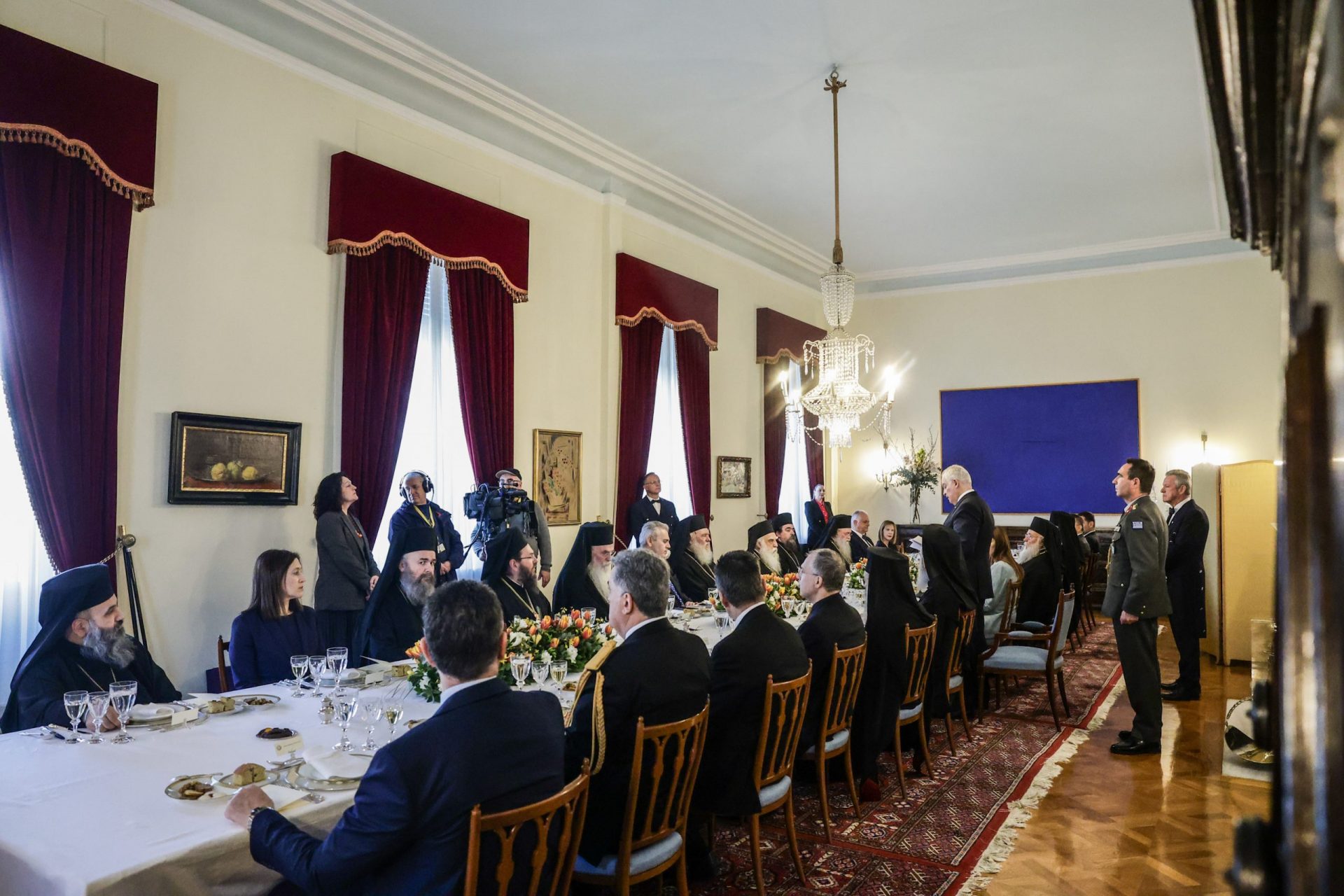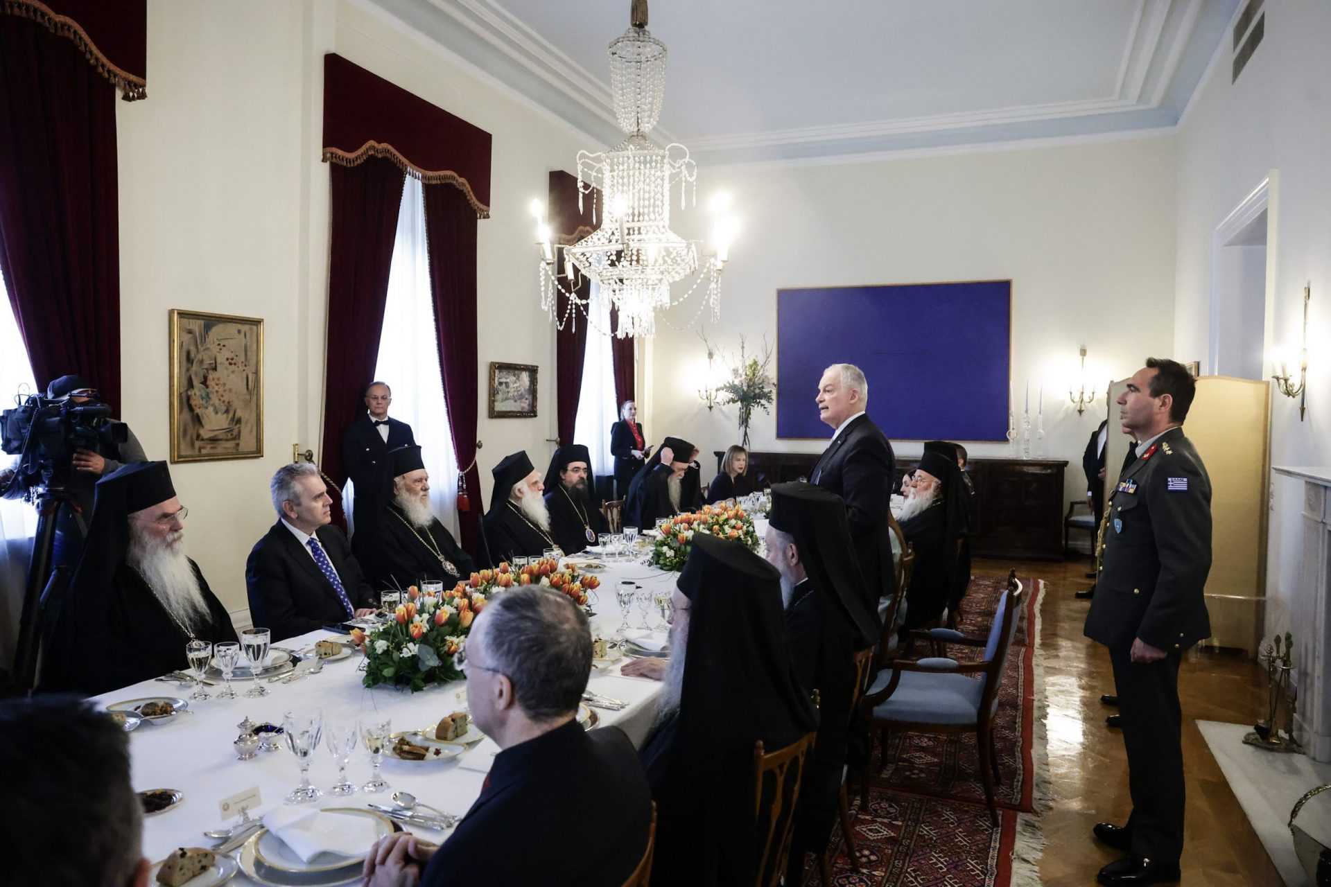 Με αυτές τις σκέψεις Μακαριώτατε υψώνω πρόποση υπέρ της υγείας Σας και των μελών της Ιεράς Συνόδου της Εκκλησίας της Ελλάδος, με την ευχή της αγαθής συμπορεύσεως Εκκλησίας και Πολιτείας με βάση τους διακριτούς ρόλους για το καλό της ελληνικής κοινωνίας.