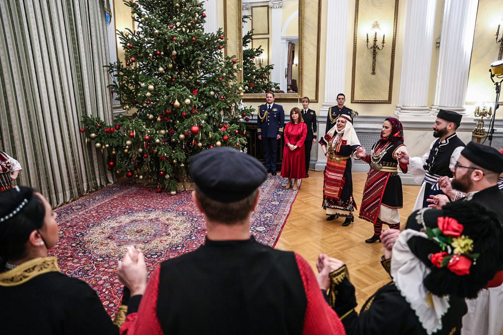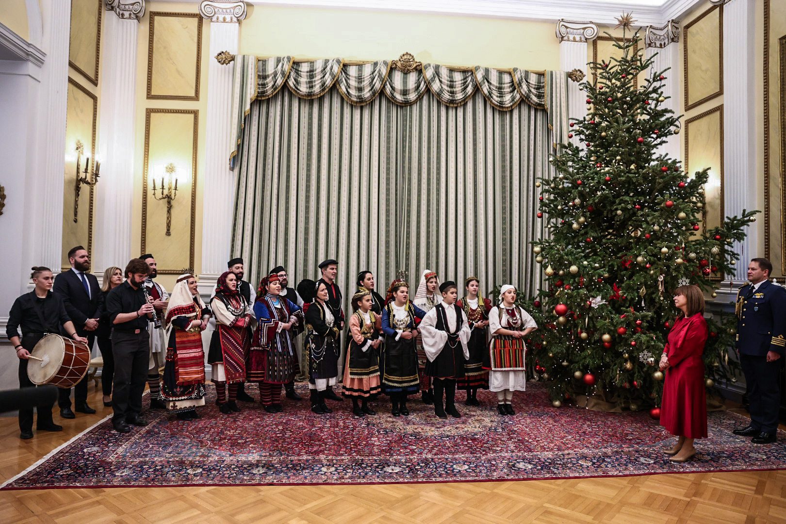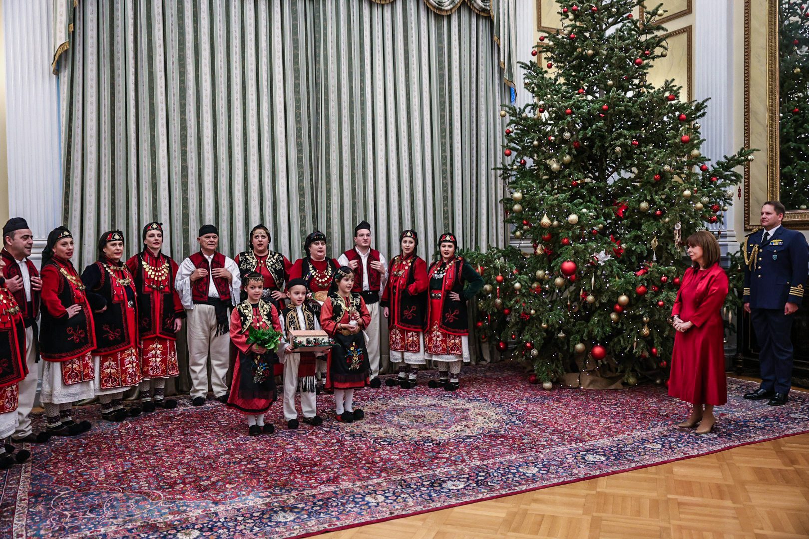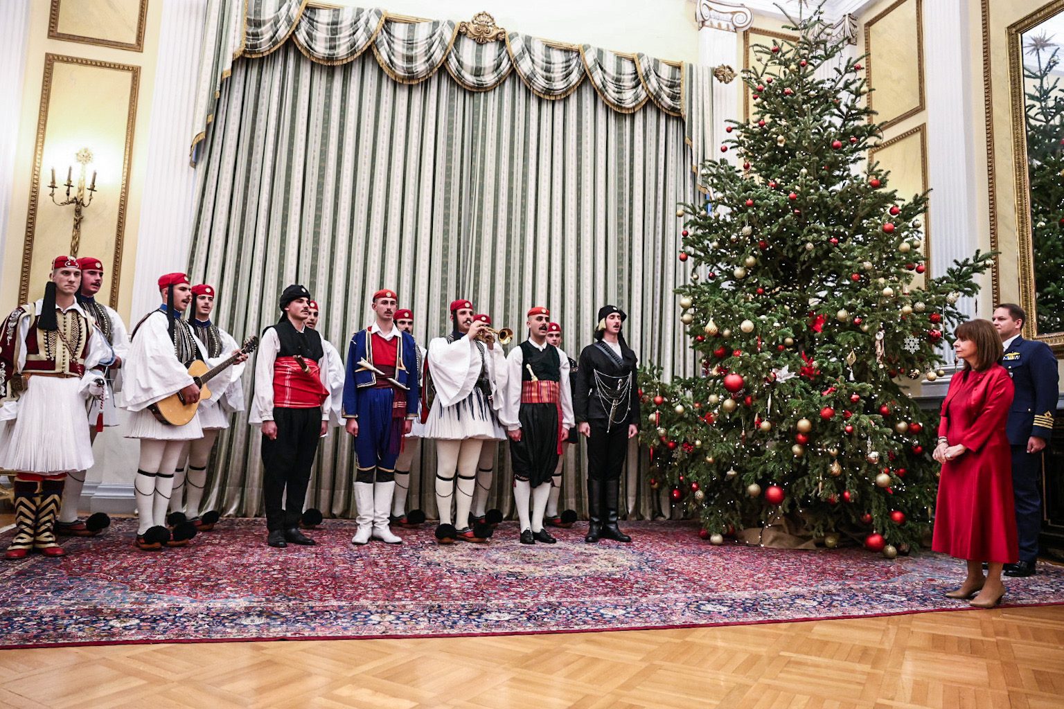 Η Μπάντα των Ενόπλων Δυνάμεων και η Προεδρική Φρουρά έψαλαν τα κάλαντα της Πρωτοχρονιάς στην Πρόεδρο της Δημοκρατίας Κατερίνα Σακελλαροπούλου.