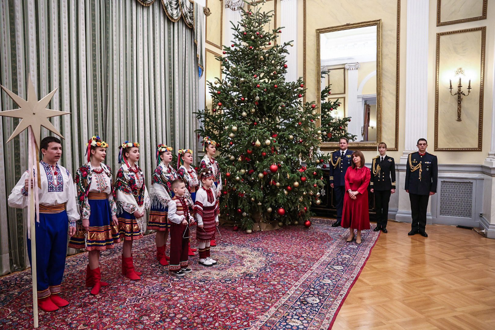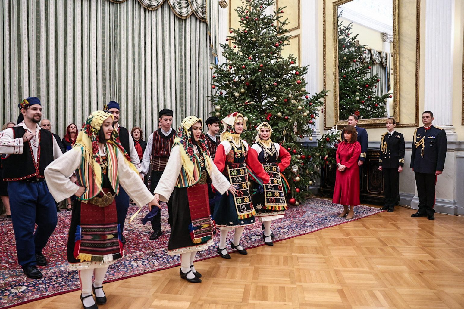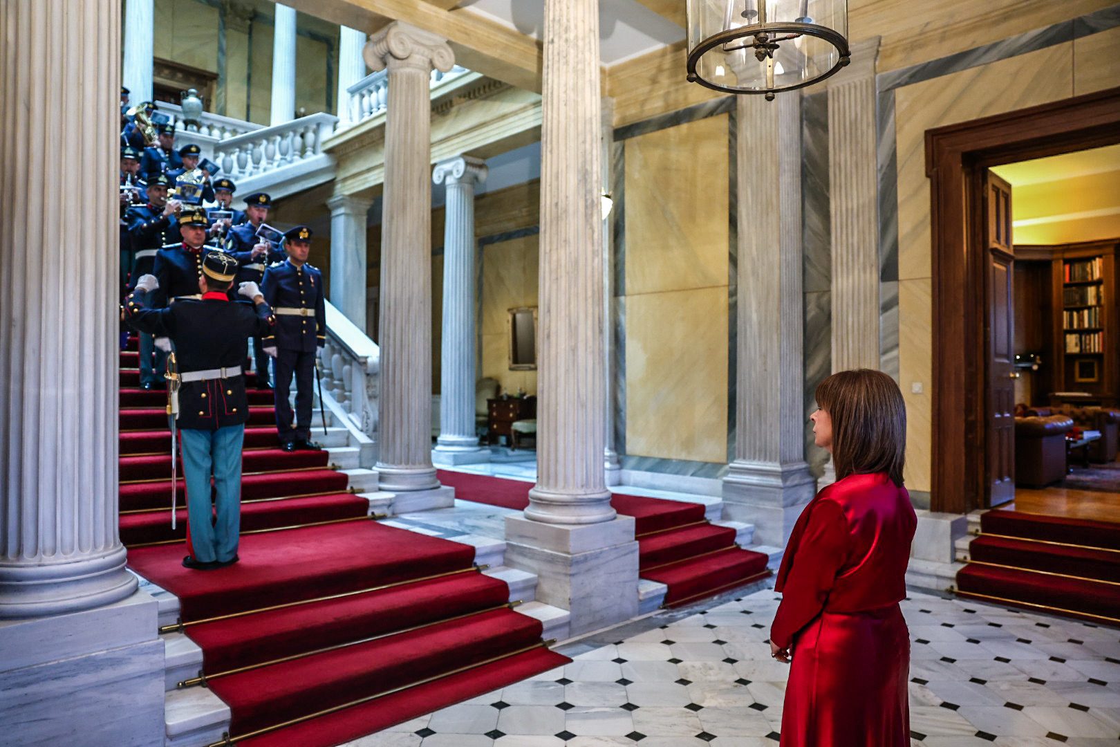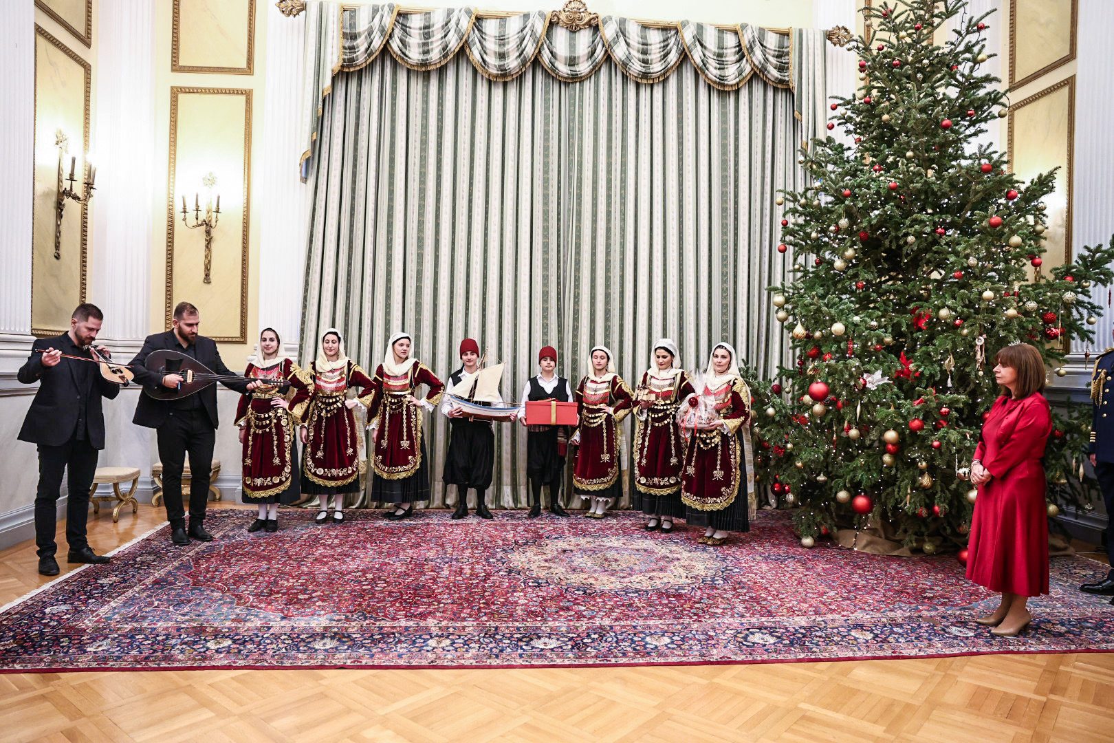Η Μπάντα των Ενόπλων Δυνάμεων και η Προεδρική Φρουρά έψαλαν τα κάλαντα της Πρωτοχρονιάς στην Πρόεδρο της Δημοκρατίας Κατερίνα Σακελλαροπούλου.