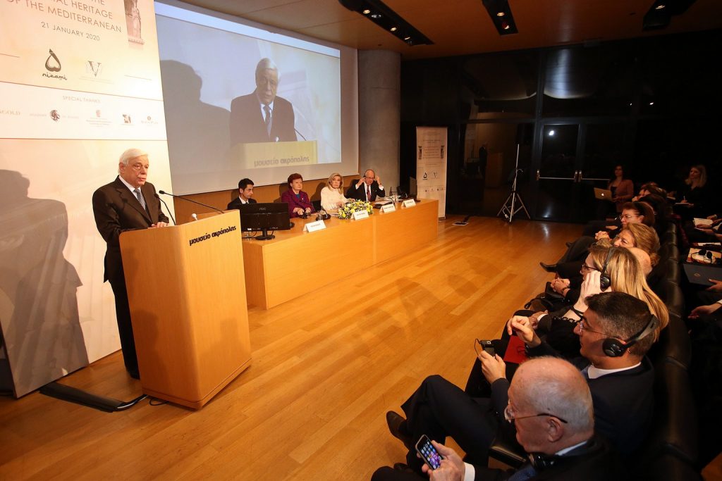 Περιποιεί ιδιαίτερη τιμή σε μένα η σημερινή βράβευσή μου, και μάλιστα με τους συμβολισμούς, τους οποίους εμπεριέχει. Θέλω δε να σας διαβεβαιώσω ότι εκλαμβάνω, ως οφείλω άλλωστε, την βράβευση αυτή περισσότερο ως χρέος να υπερασπίζομαι, στο πλαίσιο της αποστολής μου και όχι μόνο, τους ως άνω συμβολισμούς. Για τον λόγο αυτόν ακριβώς -και αφού προηγουμένως εκφράσω τα θερμά μου συγχαρητήρια στους εμβληματικούς διοργανωτές του- επιτρέψατέ μου να επικεντρώσω την σύντομη παρέμβασή μου εν συνεχεία στην βασική θεματική του Συνεδρίου σας, ιδίως δε στην πτυχή της εκείνη, η οποία αφορά τις δραματικές αρνητικές επιπτώσεις της Κλιματικής Αλλαγής στα εν γένει Μνημεία της Πολιτιστικής Κληρονομιάς της Μεσσογείου, κατ’ εξοχήν δε στα Αρχαία Μνημεία.