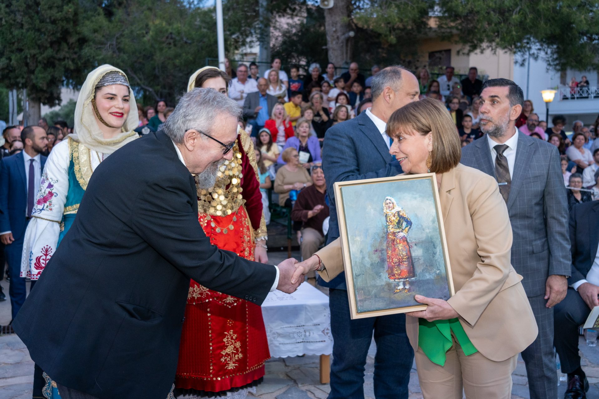 Η Πρόεδρος της Δημοκρατίας Κατερίνα Σακελλαροπούλου παρέστη στην εκδήλωση αναβίωσης του εθίμου «Ο χορός της τράτας», που εορτάζεται κάθε Τρίτη του Πάσχα στα Μέγαρα. Την Πρόεδρο υποδέχθηκαν ο Δήμαρχος Μεγαρέων Παναγιώτης Μαργέτης και ο Υφυπουργός Εξωτερικών Γιώργος Κώτσηρας.
