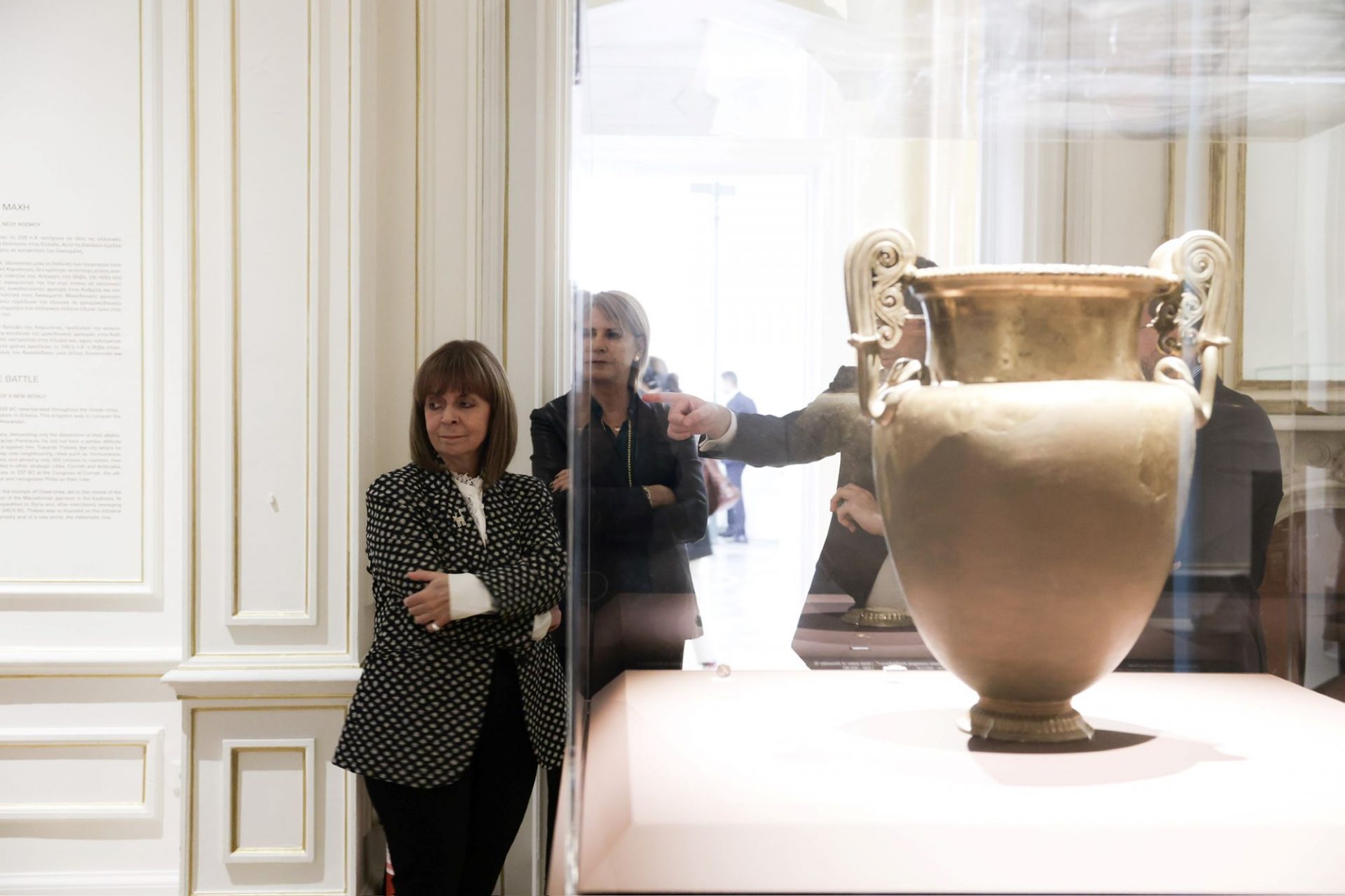 Η Πρόεδρος της Δημοκρατίας Κατερίνα Σακελλαροπούλου ξεναγήθηκε στην έκθεση «Χαιρώνεια, 2 Αυγούστου 338 π.Χ.: Μια μέρα που άλλαξε τον κόσμο», στο Μουσείο Κυκλαδικής Τέχνης.