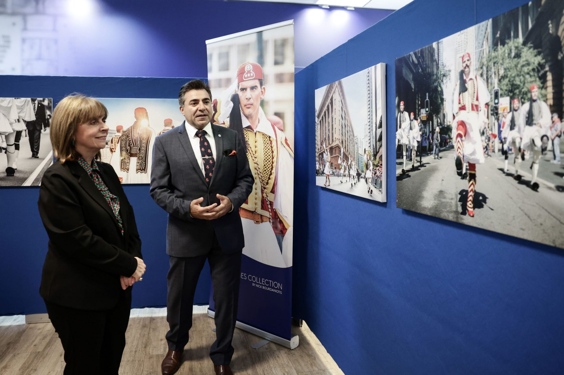 Η Πρόεδρος της Δημοκρατίας Κατερίνα Σακελλαροπούλου επισκέφθηκε την έκθεση του Ελληνοαυστραλού φωτογράφου Νίκου Μπουρδανιώτη «THE EVZONES COLLECTION», στην Προεδρική Φρουρά. Η κυρία Σακελλαροπούλου ξεναγήθηκε στην έκθεση από τον κύριο Μπουρδανιώτη και τον ευχαρίστησε για την ευγενική του χειρονομία να δωρίσει τις φωτογραφίες στην Προεδρία της Δημοκρατίας.