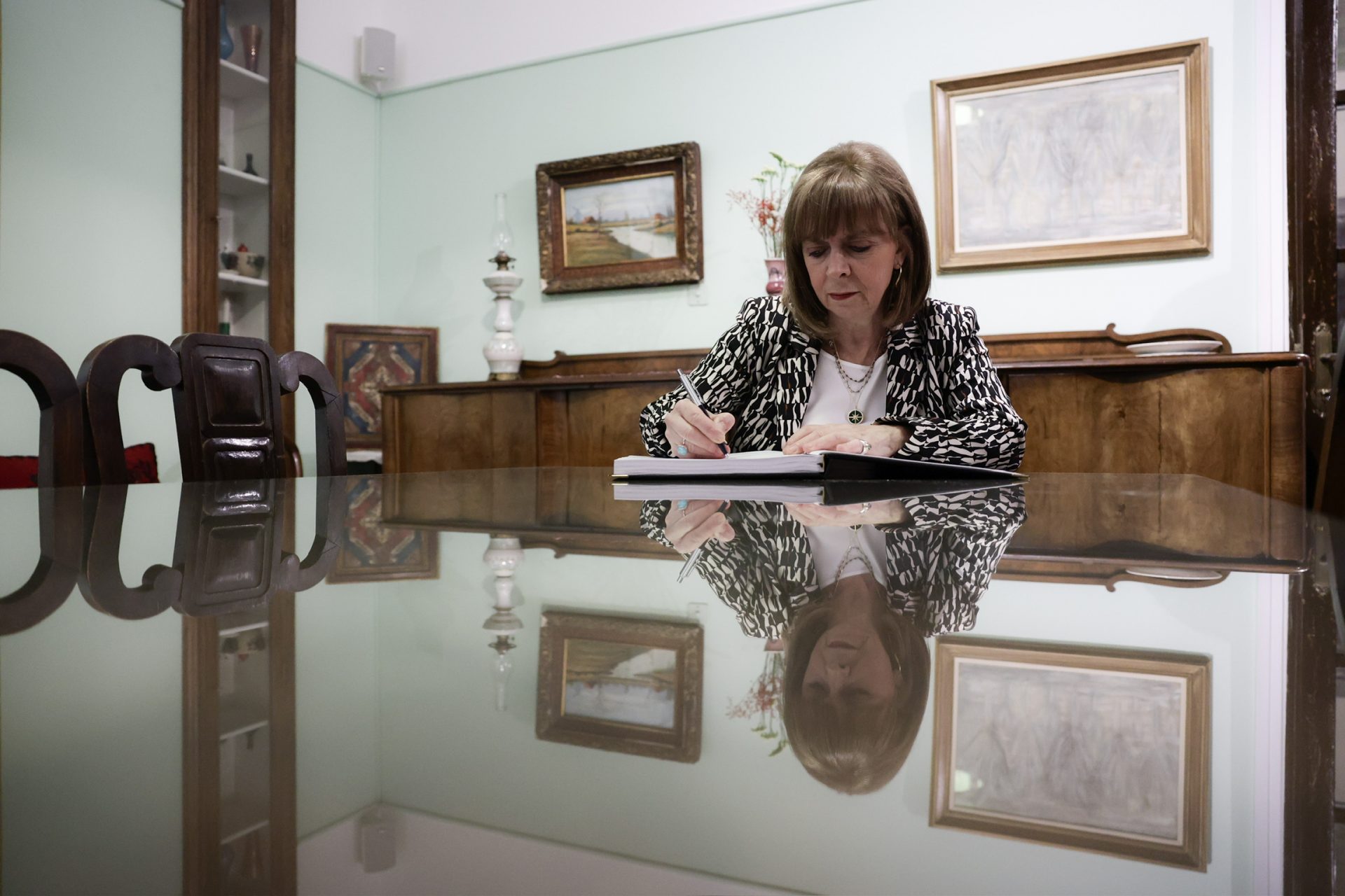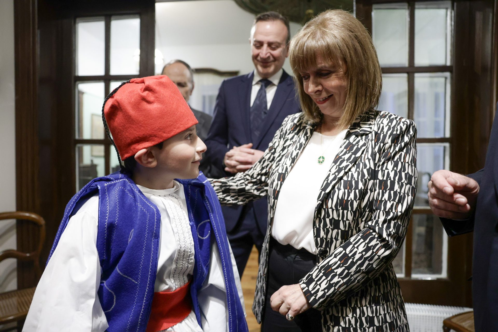 Νωρίτερα, η κυρία Σακελλαροπούλου ξεναγήθηκε στην ανακαινισμένη Οικία Κωνσταντίνου Φρόντζου, που λειτουργεί ως πολιτιστικό κέντρο της πόλης.