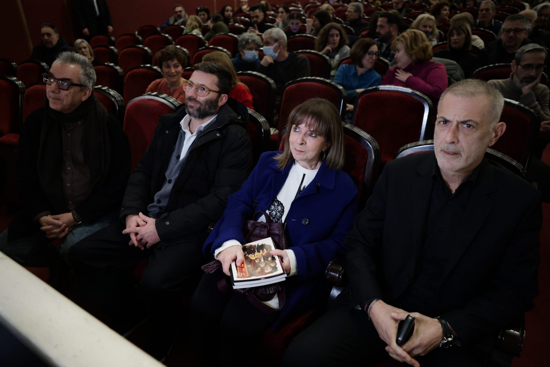H Πρόεδρος της Δημοκρατίας Κατερίνα Σακελλαροπούλου παρακολούθησε στο Δημοτικό Θέατρο Πειραιά την πρεμιέρα της παράστασης «MERDE!» του Suyako, σε σκηνοθεσία Γιώργου Κουτλή και Βασίλη Μαγουλιώτη.