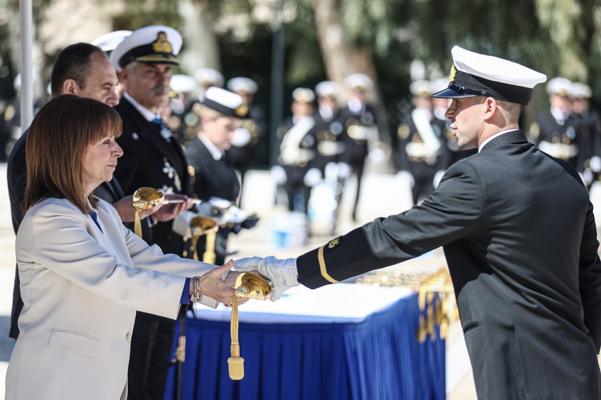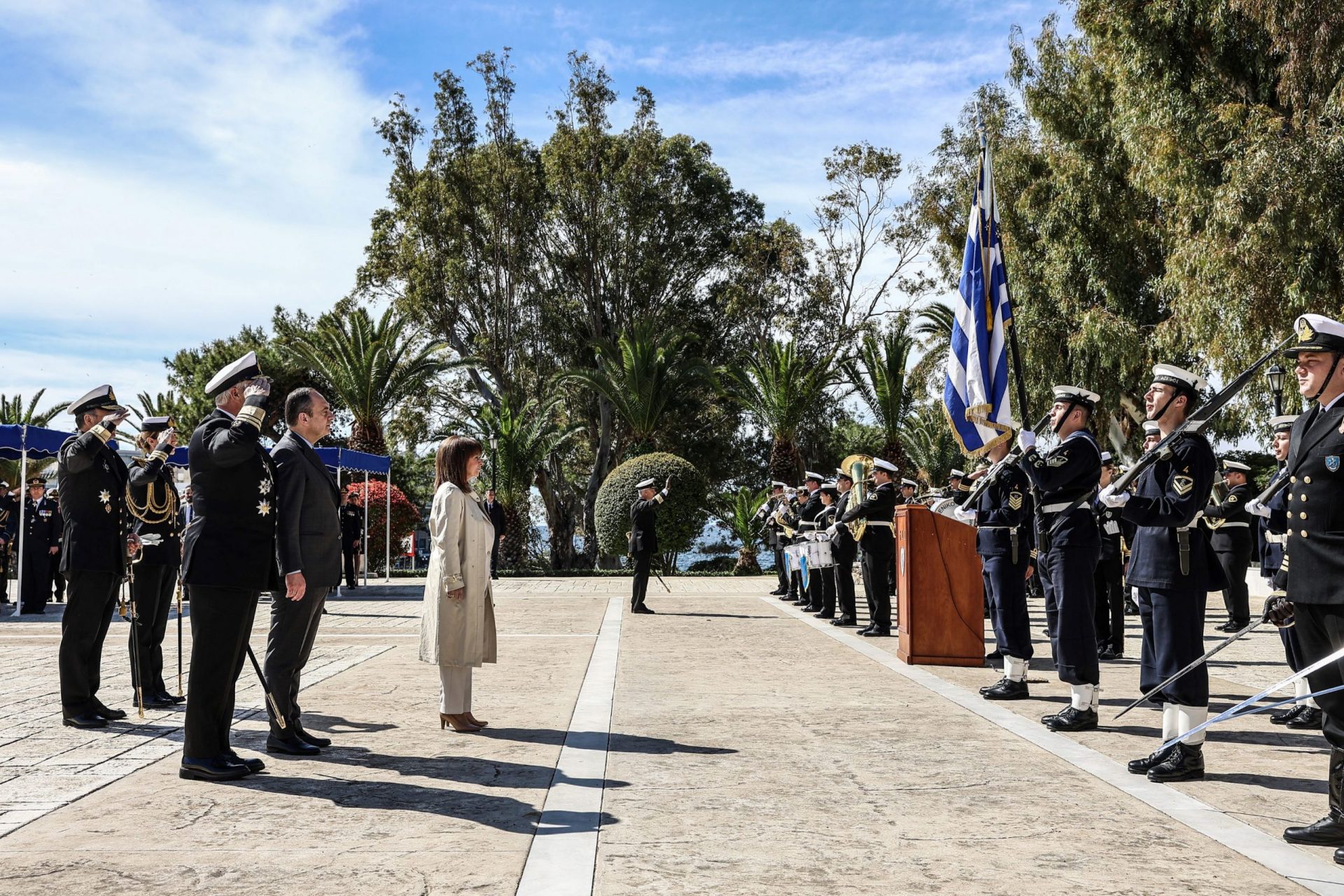 Η Πρόεδρος της Δημοκρατίας Κατερίνα Σακελλαροπούλου παρέστη στην τελετή ορκωμοσίας στη Σχολή Ναυτικών Δοκίμων και απένειμε τα ξίφη στους νέους Σημαιοφόρους του Λιμενικού Σώματος – Ελληνικής Ακτοφυλακής.