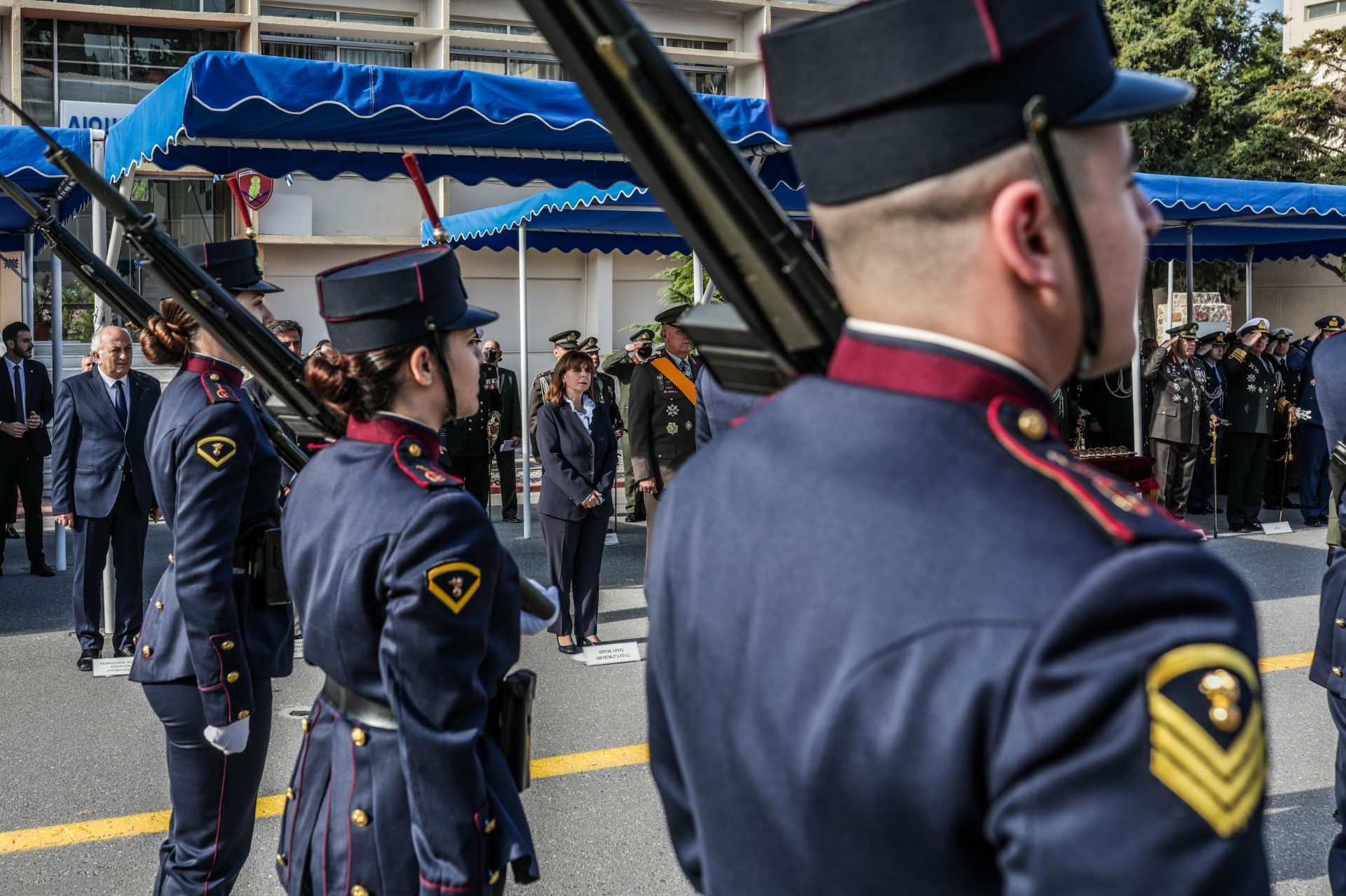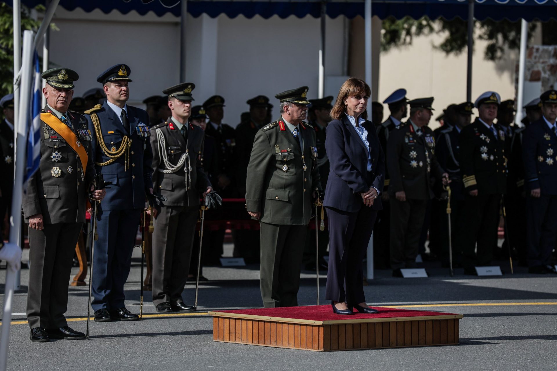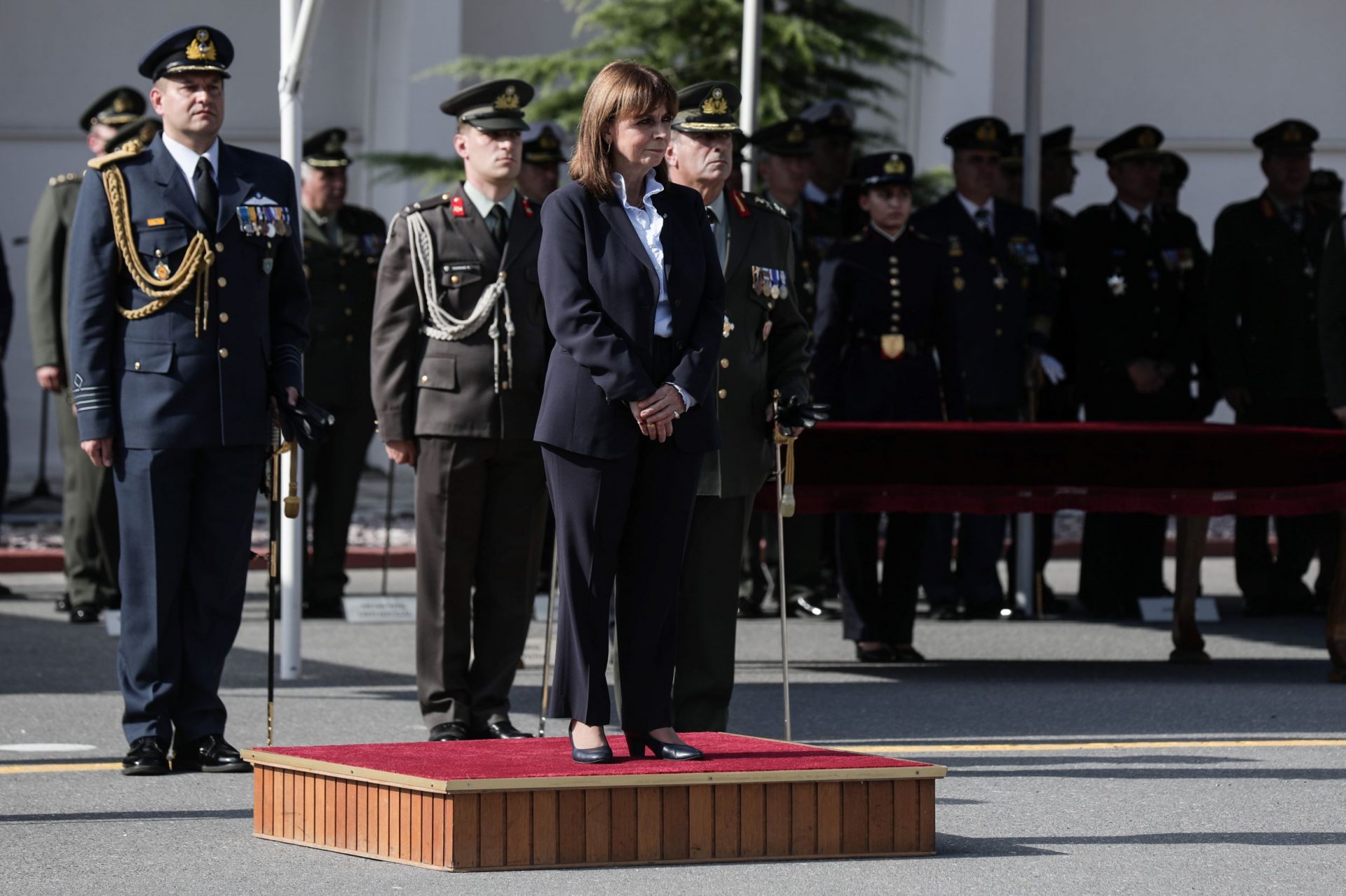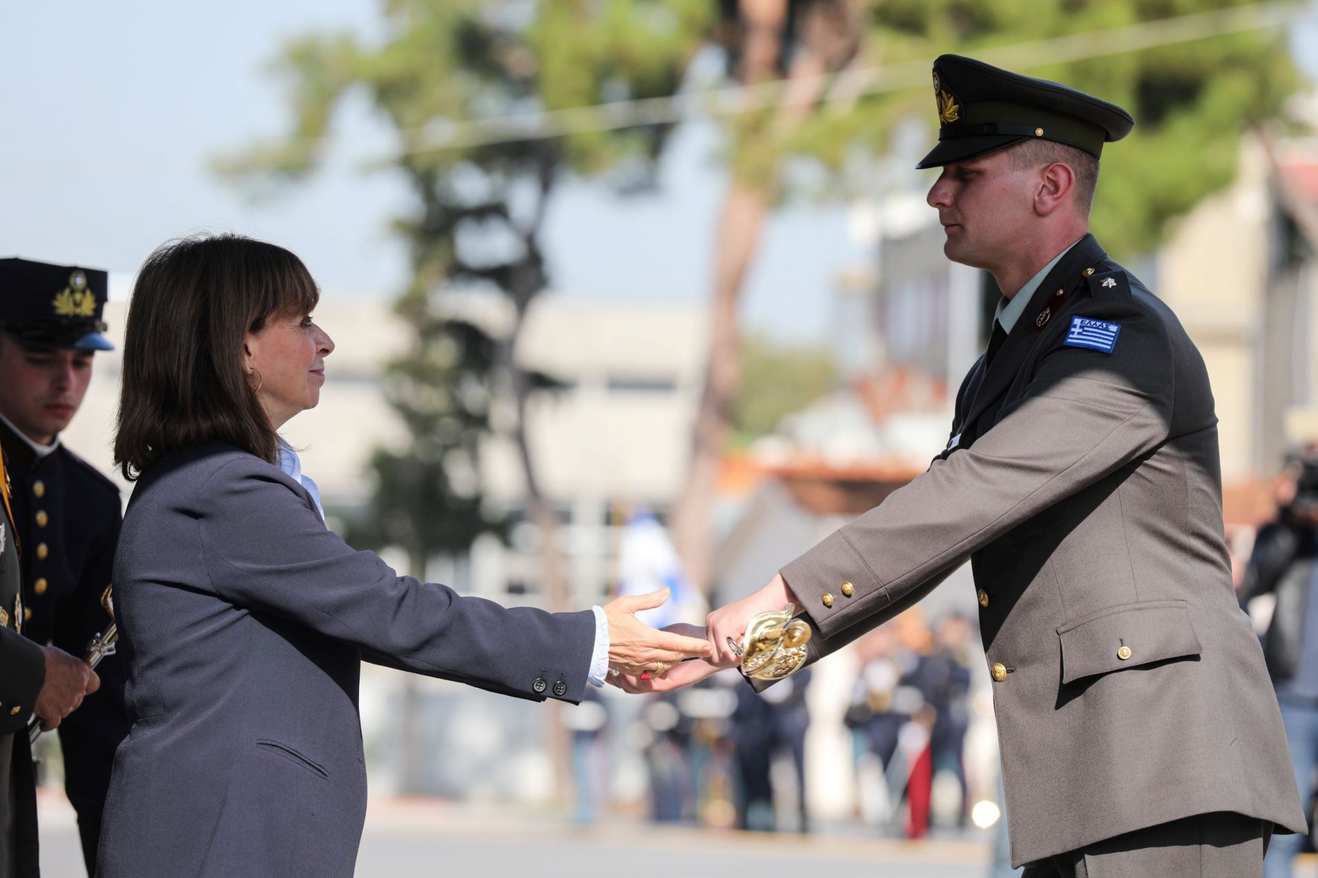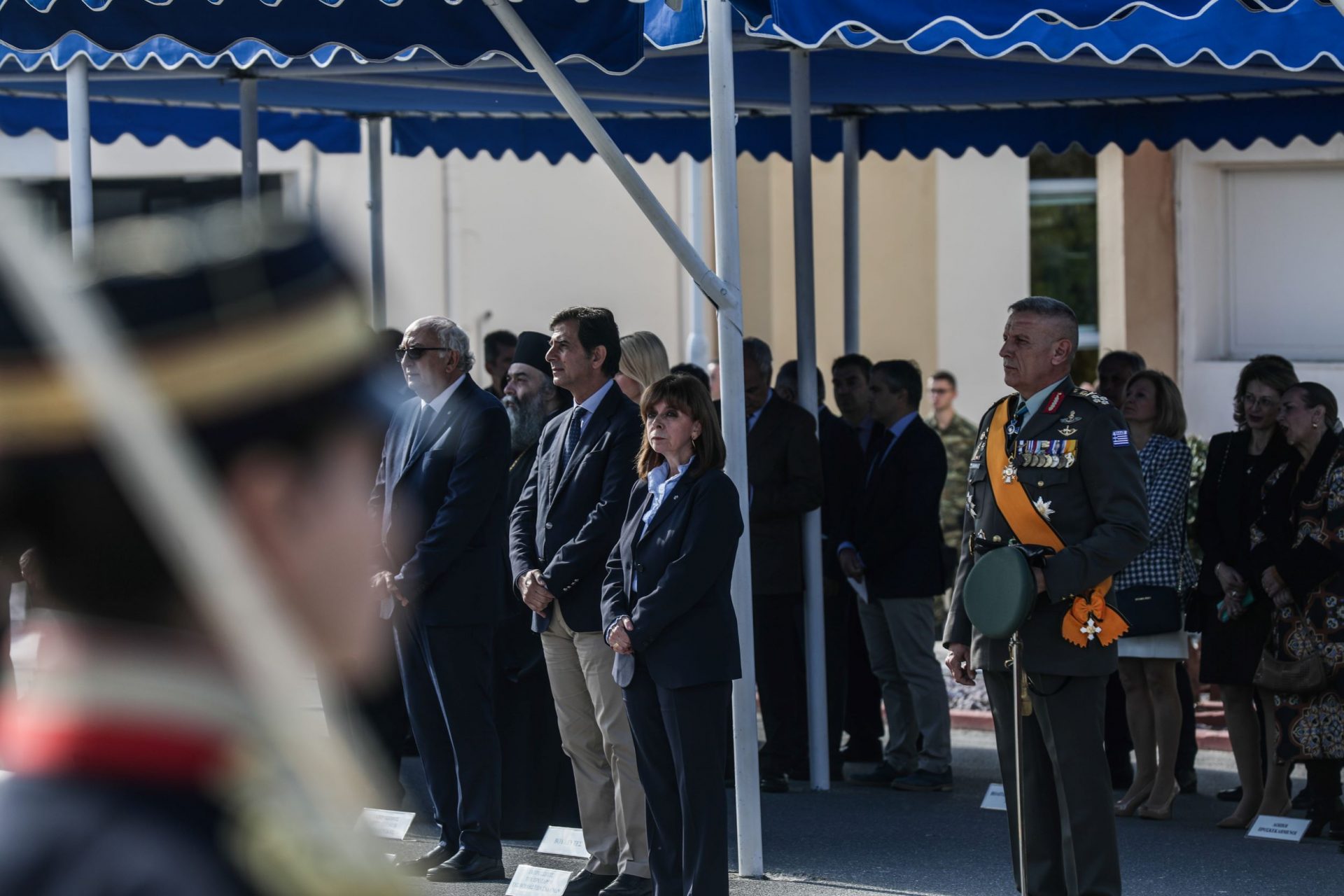 Η Πρόεδρος της Δημοκρατίας Κατερίνα Σακελλαροπούλου παρευρέθηκε στην τελετή ορκωμοσίας στη Στρατιωτική Σχολή Αξιωματικών Σωμάτων και απένειμε τα ξίφη στους νέους αξιωματικούς.