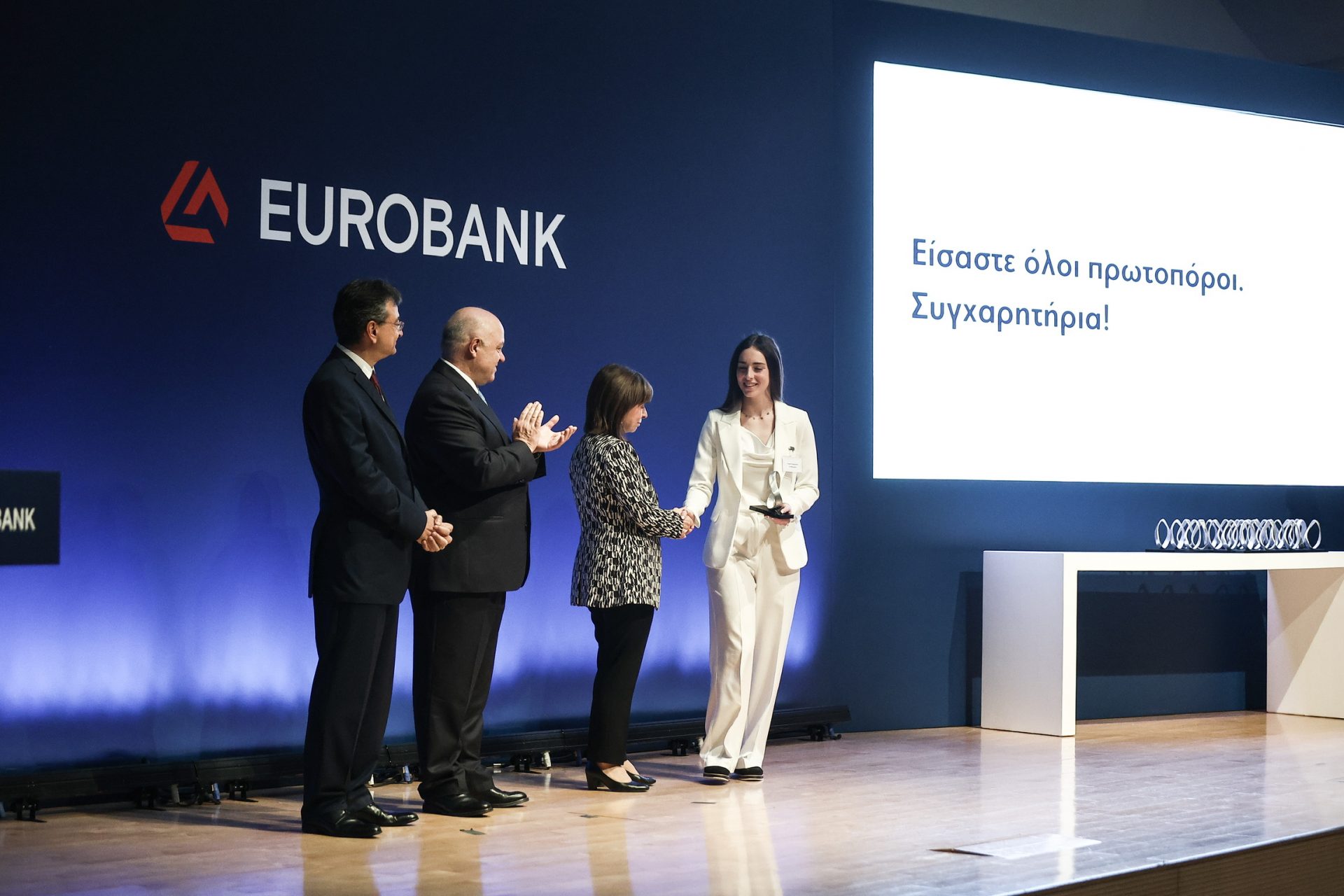 Η Πρόεδρος της Δημοκρατίας Κατερίνα Σακελλαροπούλου επέδωσε σε αριστούχους μαθητές και μαθήτριες από όλη τη χώρα τα βραβεία για το σχολικό έτος 2021-2022, στην τελετή «Οι Πρώτοι των Πρώτων». Η εκδήλωση πραγματοποιήθηκε στο πλαίσιο του προγράμματος «Μπροστά για την παιδεία», το οποίο υλοποιεί η Τράπεζα Eurobank σε συνεργασία με το Υπουργείο Παιδείας και Θρησκευμάτων.