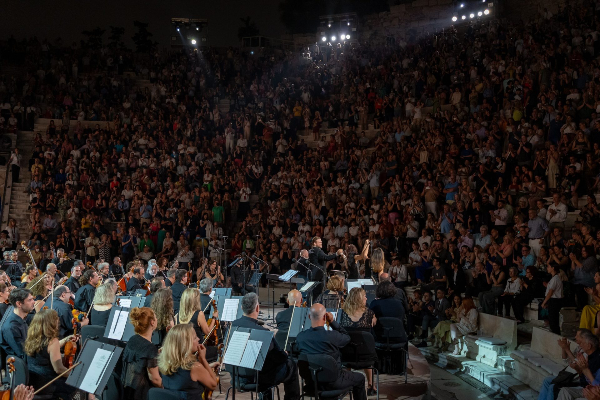 Η Πρόεδρος της Δημοκρατίας Κατερίνα Σακελλαροπούλου παρακολούθησε στο Ωδείο Ηρώδου Αττικού, υπό τη μουσική διεύθυνση του Λουκά Καρυτινού, το «Ρέκβιεμ» του Τζουζέπε Βέρντι, με το οποίο η Κρατική Ορχήστρα Αθηνών γιορτάζει φέτος τα 80 χρόνια από την ίδρυσή της.