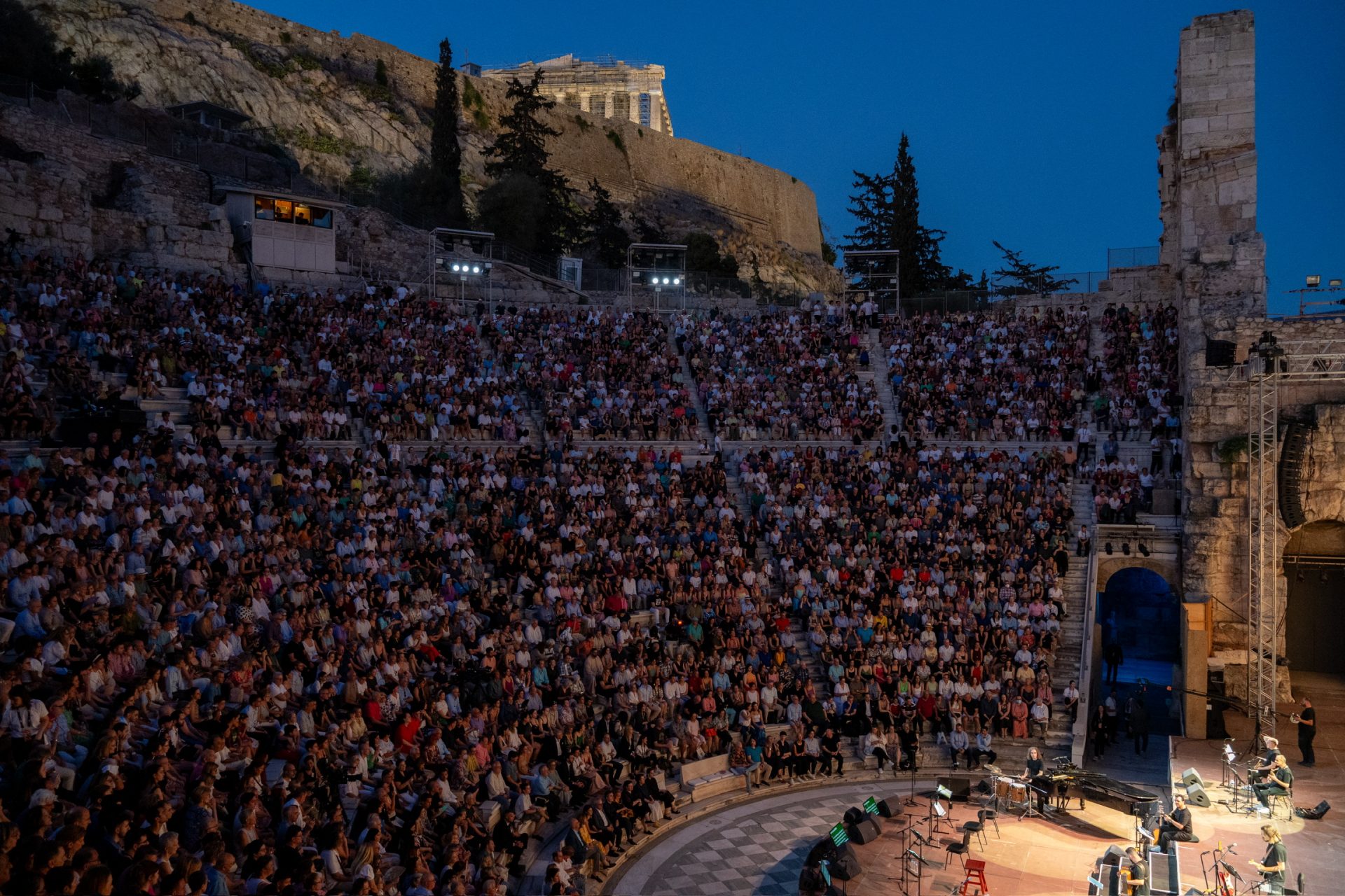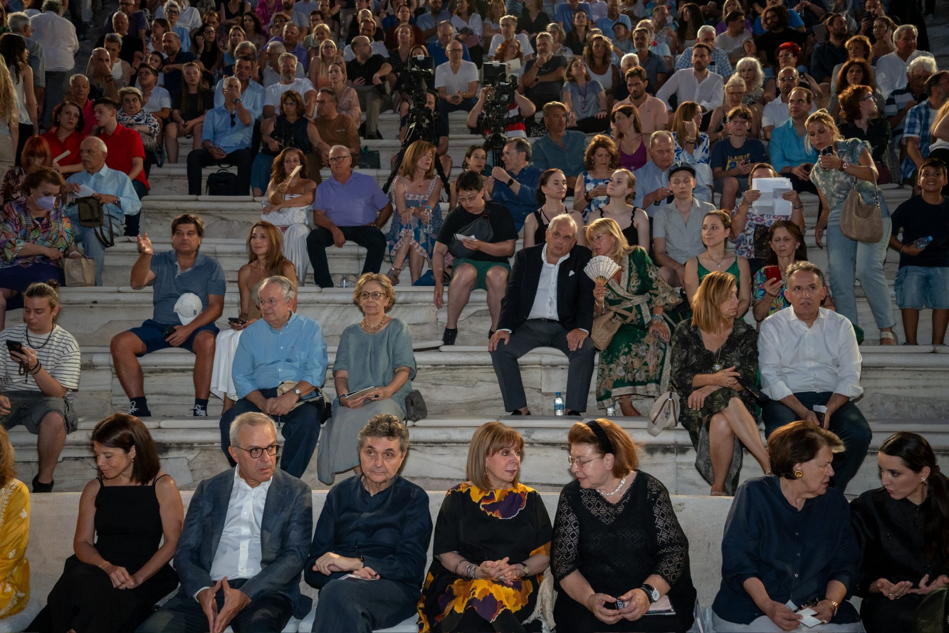 Η Πρόεδρος της Δημοκρατίας Κατερίνα Σακελλαροπούλου παρακολούθησε στο Ωδείο Ηρώδου Αττικού τη συναυλία του Διονύση Σαββόπουλου «Η δική μας Μεταπολίτευση», στο πλαίσιο του Φεστιβάλ Αθηνών Επιδαύρου.