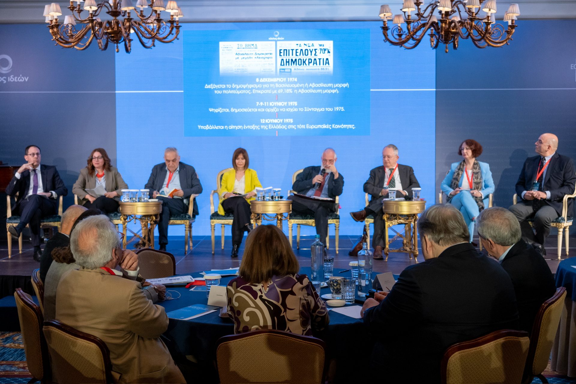 Η Πρόεδρος της Δημοκρατίας Κατερίνα Σακελλαροπούλου παρέστη στο συνέδριο «Η καμπύλη της Μεταπολίτευσης (1974-2024)», που διοργανώνει ο Κύκλος Ιδεών σε συνεργασία με το Οικονομικό Φόρουμ των Δελφών για τα 50 χρόνια της Μεταπολίτευσης, στο ξενοδοχείο Μεγάλη Βρεταννία.