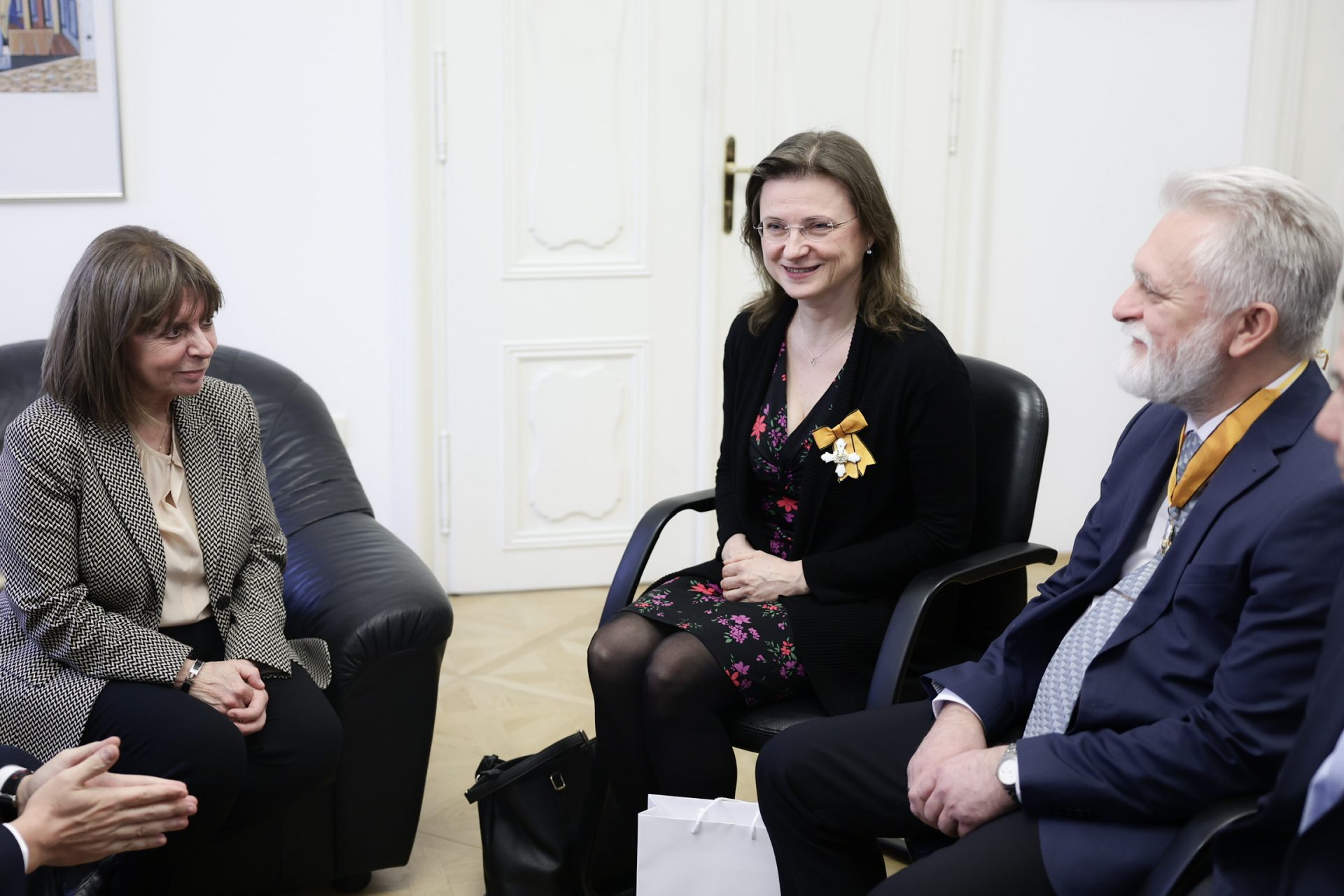 Η Πρόεδρος της Δημοκρατίας Κατερίνα Σακελλαροπούλου, στο πλαίσιο της επίσημης επίσκεψής της στη Σλοβακία, έπειτα από πρόσκληση της Προέδρου Zuzana Čaputová, συναντήθηκε στην ελληνική πρεσβεία με τους παρασημοφορηθέντες Ελληνιστές Jana Grusková και Ján Zozul’ak, καθώς και με τον εκπαιδευτικό Ευστράτιο Γκόγκολα.
