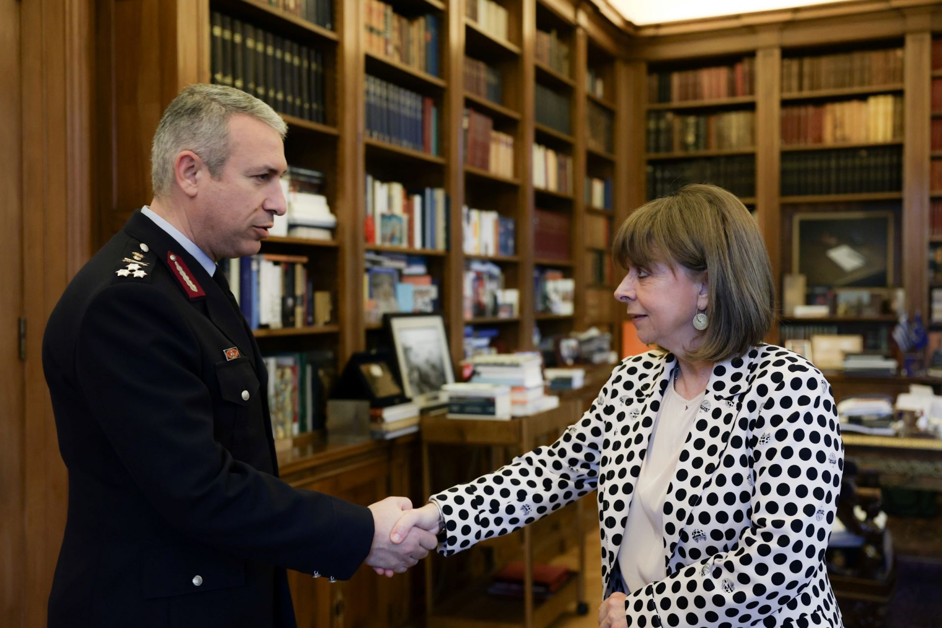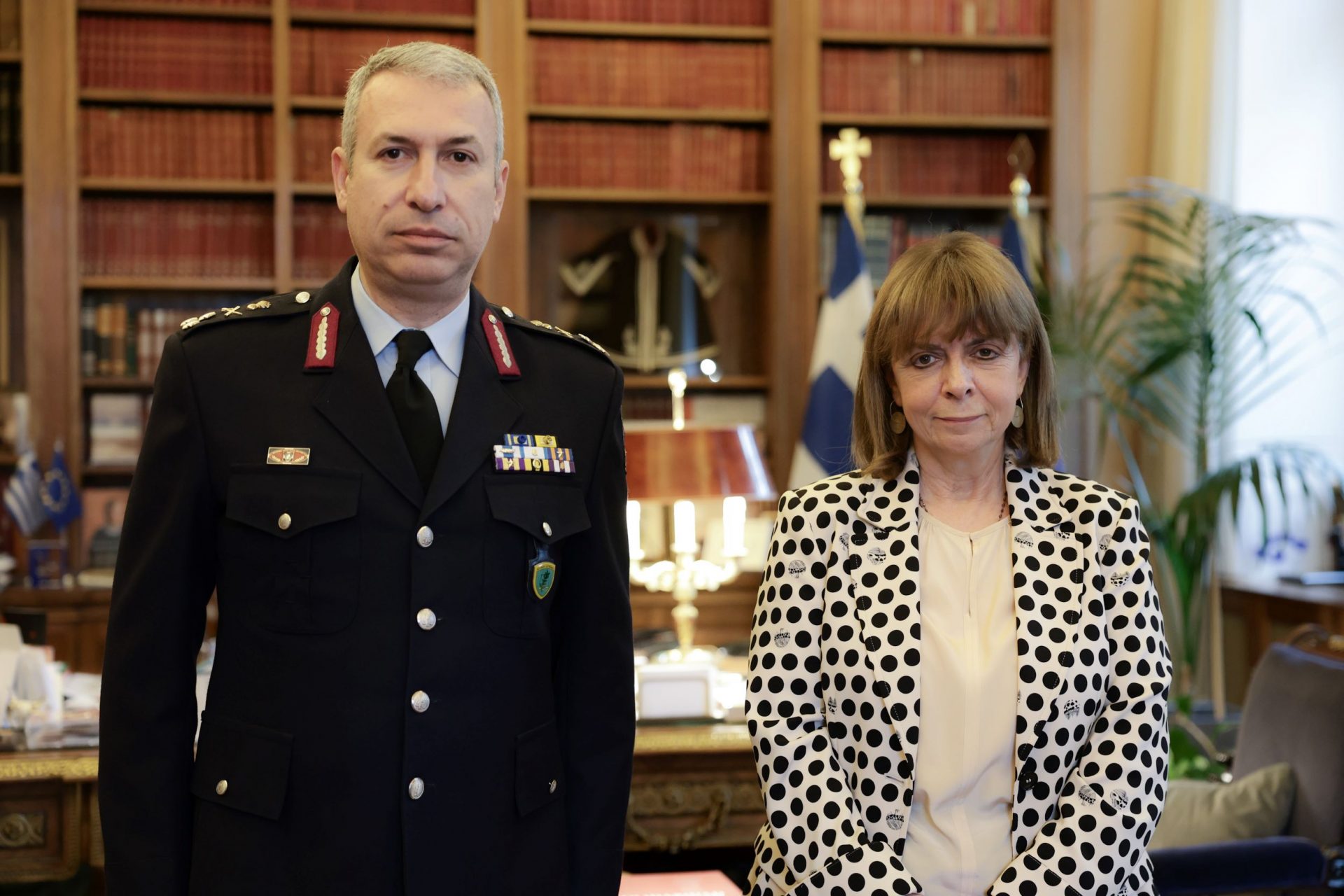 Η Πρόεδρος της Δημοκρατίας Κατερίνα Σακελλαροπούλου δέχθηκε τον νέο Αρχηγό της Ελληνικής Αστυνομίας, Αντιστράτηγο Δημήτριο Μάλλιο, ο οποίος την ενημέρωσε για τους στόχους και το έργο του Σώματος, σχετικά με την ασφάλεια και την προστασία των πολιτών.