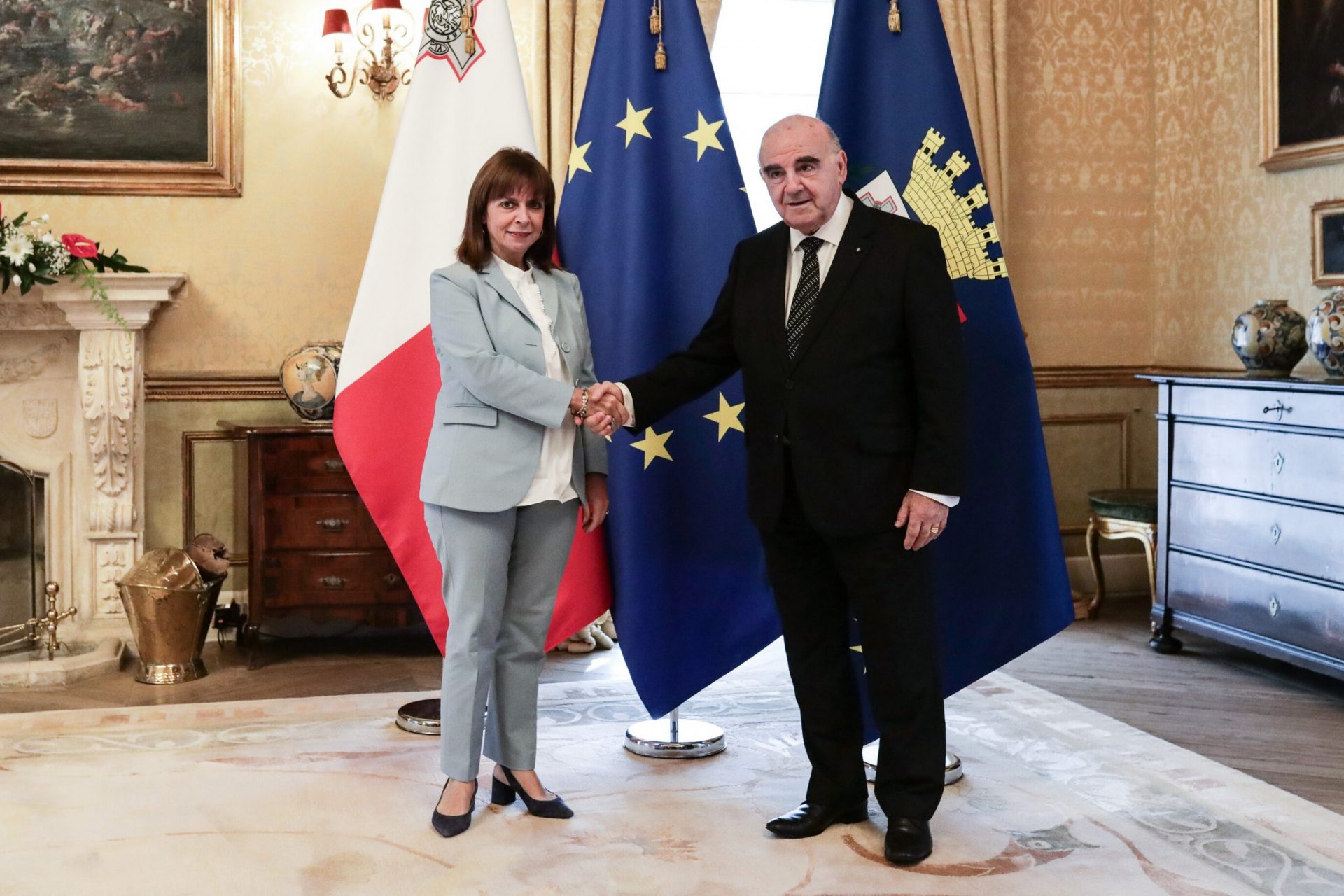 Η Πρόεδρος της Δημοκρατίας Κατερίνα Σακελλαροπούλου, μετά την ολοκλήρωση των εργασιών της 17ης Άτυπης Συνόδου των Αρχηγών Κρατών της Ομάδας Arraiolos στη Βαλέτα, συναντήθηκε με τον Πρόεδρο της Μάλτας George Vella.