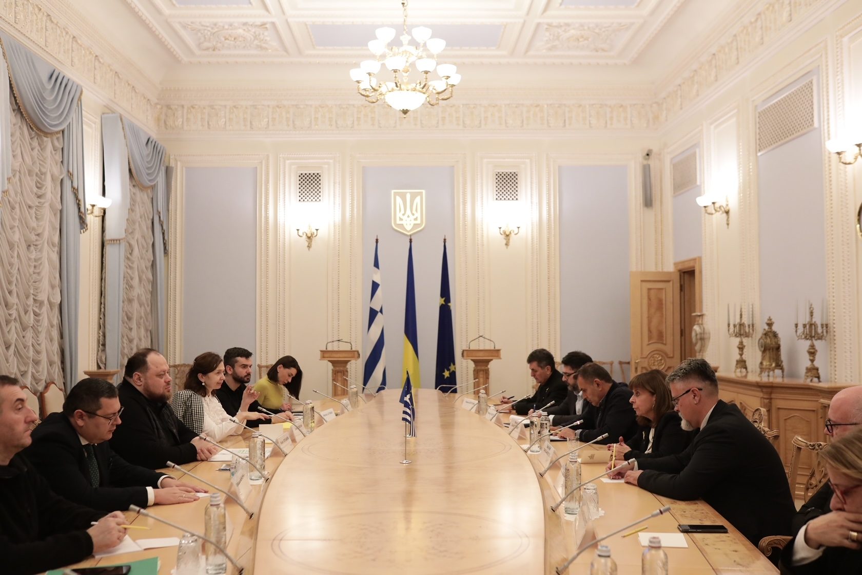 Η Πρόεδρος της Δημοκρατίας Κατερίνα Σακελλαροπούλου, ολοκληρώνοντας την επίσκεψή της στην Ουκρανία, μετέβη στο Κοινοβούλιο, όπου την υποδέχθηκε ο Πρόεδρός του Ruslan Stefanchuk. Ακολούθησαν διευρυμένες συνομιλίες των δύο αντιπροσωπειών.