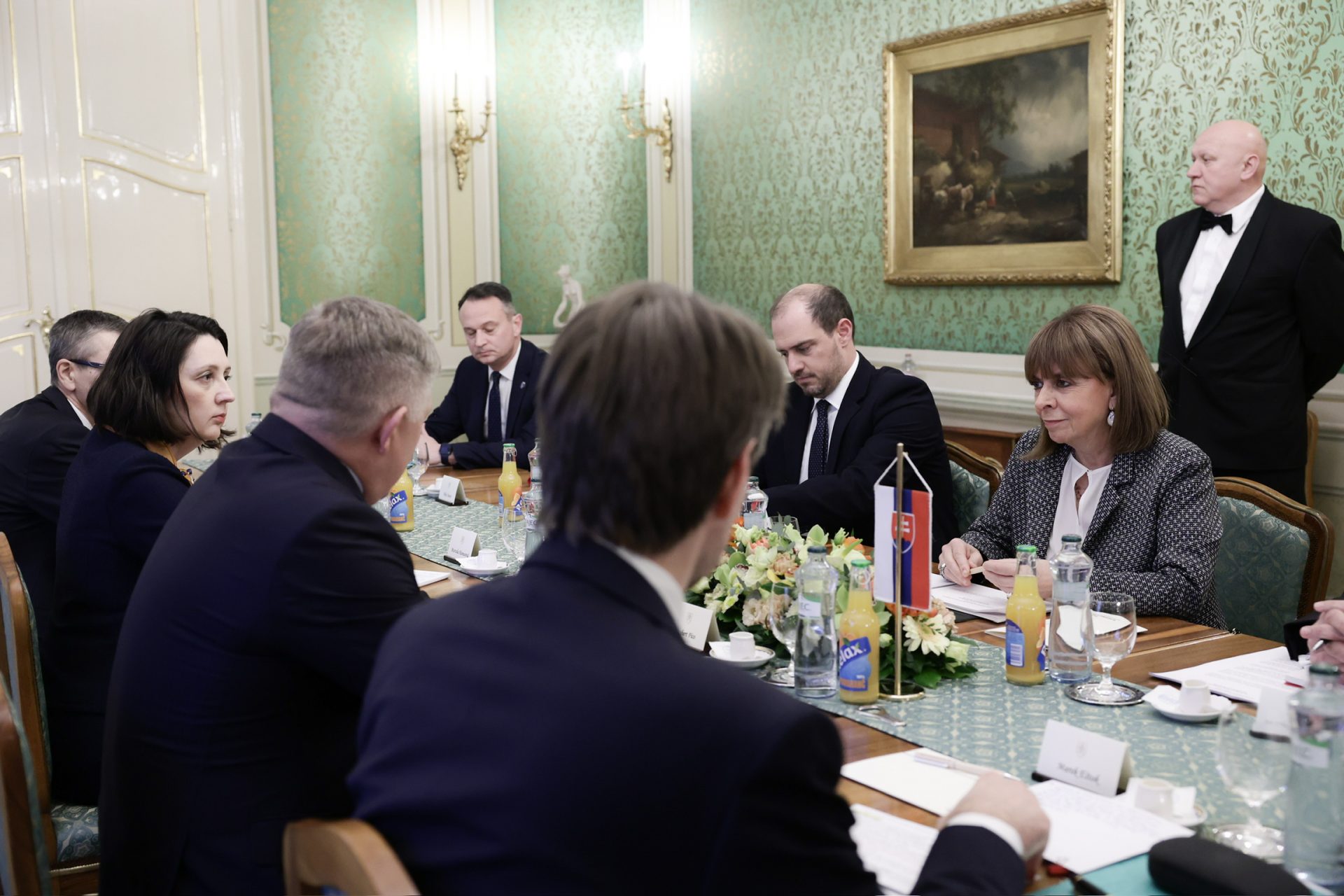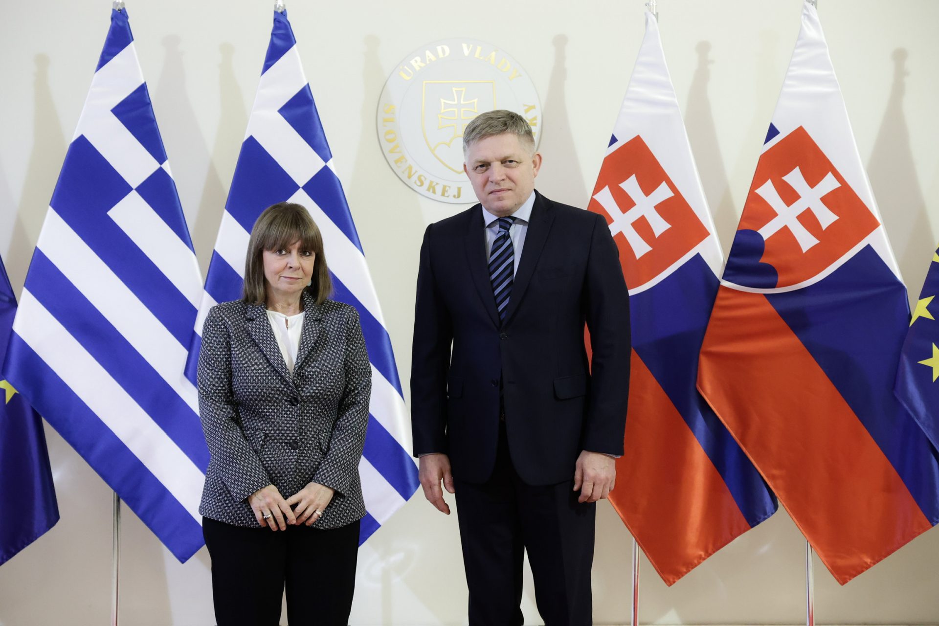 Η Πρόεδρος της Δημοκρατίας Κατερίνα Σακελλαροπούλου, στο πλαίσιο της επίσημης επίσκεψης στη Δημοκρατία της Σλοβακίας που πραγματοποιείται έπειτα από πρόσκληση της Προέδρου της χώρας Zuzana Čaputová, συναντήθηκε με τον Πρωθυπουργό της Σλοβακίας Robert Fico στο Πρωθυπουργικό Μέγαρο. Ακολούθησαν διευρυμένες συνομιλίες, με τη συμμετοχή αντιπροσωπειών των δύο χωρών.