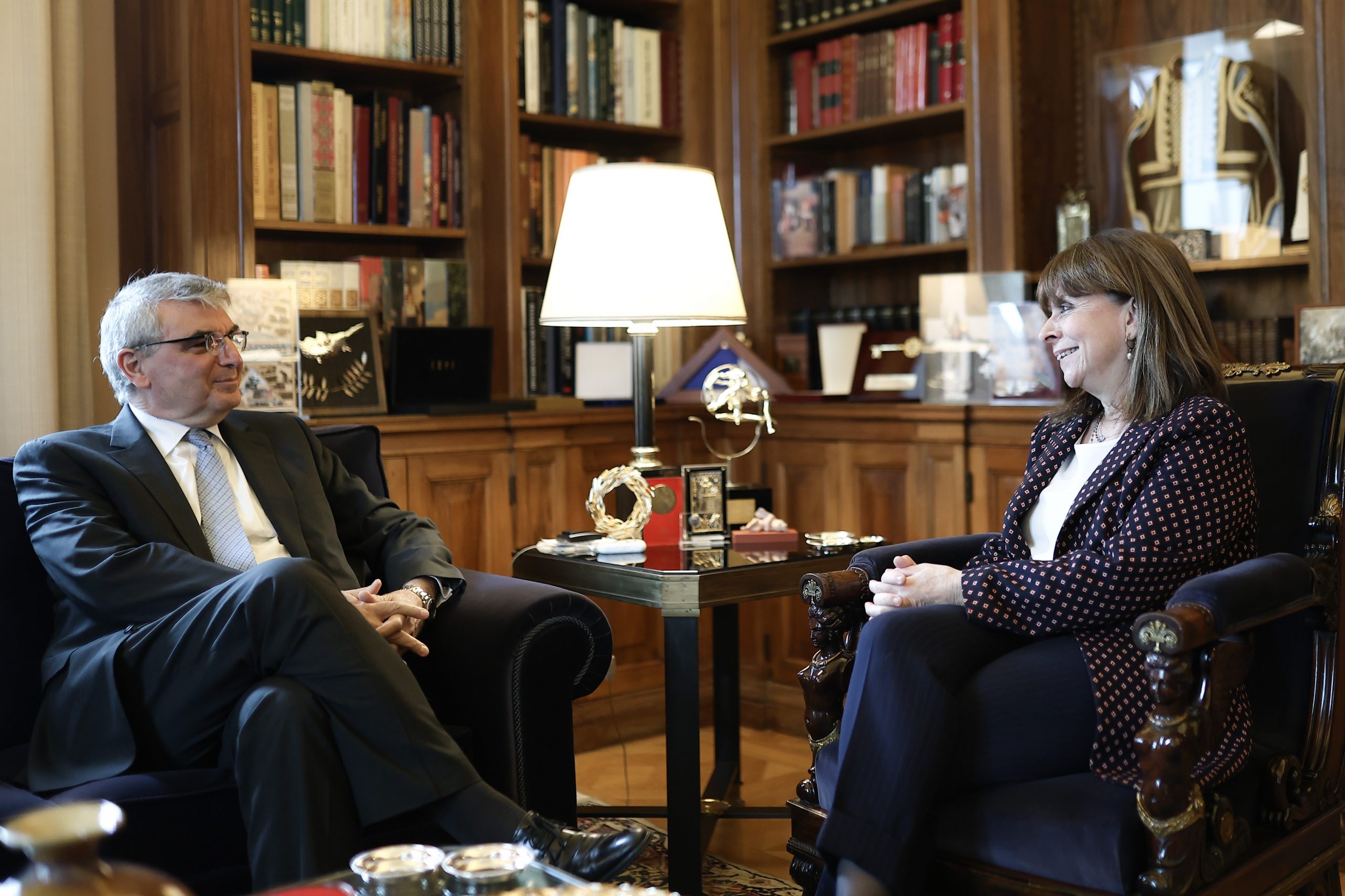 Η Πρόεδρος της Δημοκρατίας Κατερίνα Σακελλαροπούλου δέχθηκε τον Υφυπουργό Κοινωνικής Ασφάλισης Παναγιώτη Τσακλόγλου, ο οποίος την ενημέρωσε για θέματα της αρμοδιότητάς του και ειδικότερα για τις εξελίξεις στο σύστημα κοινωνικής ασφάλισης.