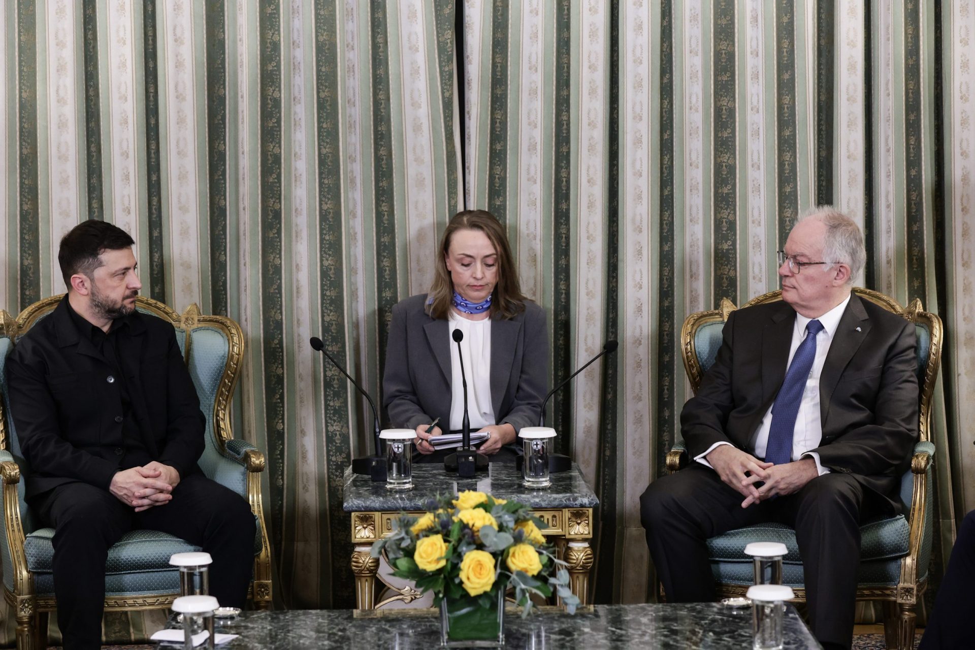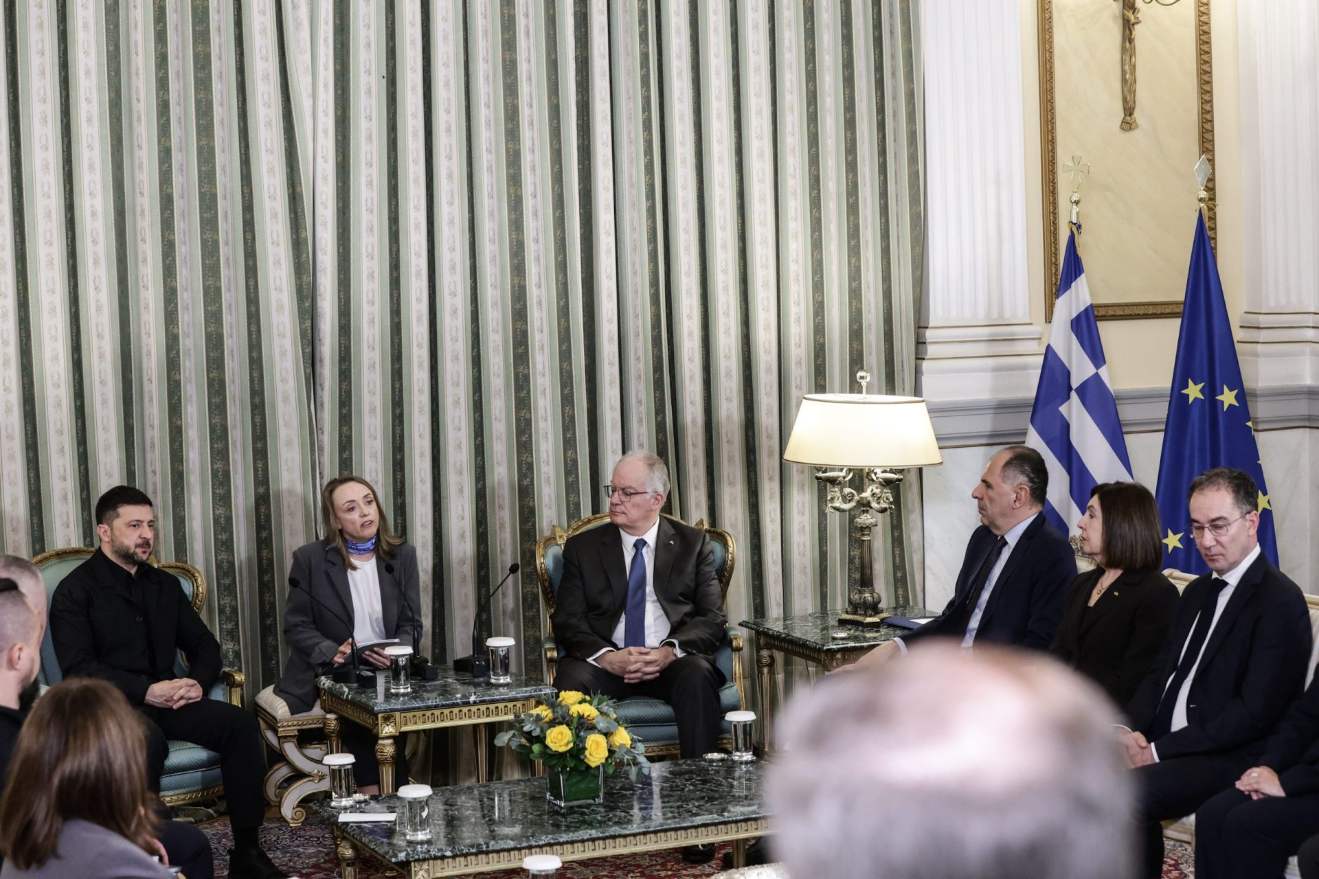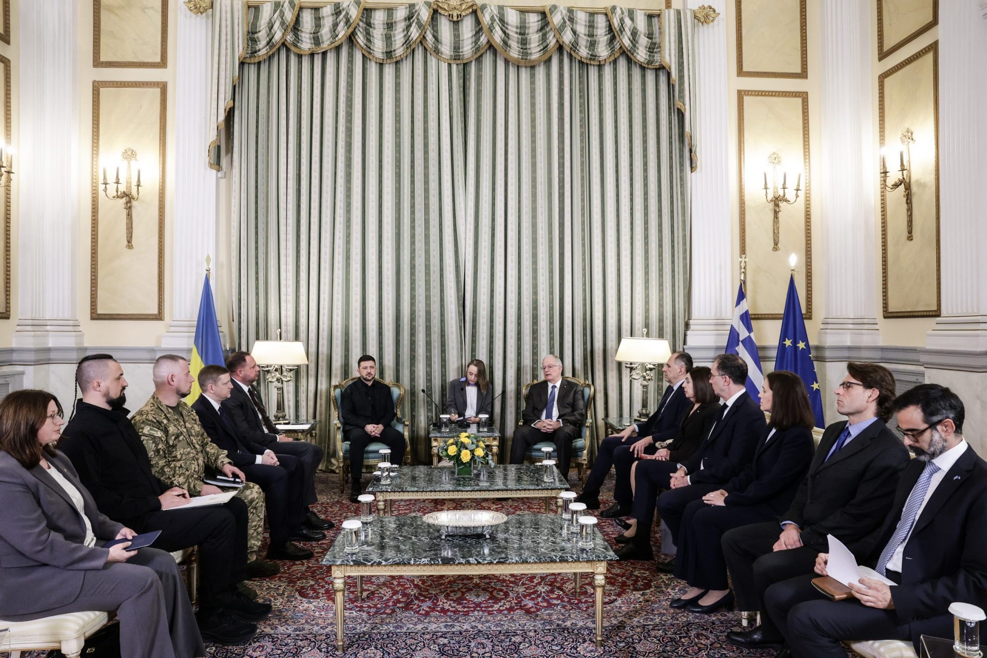 ΚΩΝΣΤΑΝΤΙΝΟΣ ΑΝ. ΤΑΣΟΥΛΑΣ: Κύριε Πρόεδρε, με χαρά σας υποδέχομαι σήμερα στο Προεδρικό Μέγαρο. Η επίσκεψή σας στην Αθήνα καταδεικνύει τους ισχυρούς δεσμούς ανάμεσα στις χώρες μας σε μια περίοδο χρονική που είναι κρίσιμη τόσο για την πατρίδα σας, την Ουκρανία, όσο για την Ευρώπη και για τον κόσμο όλο.