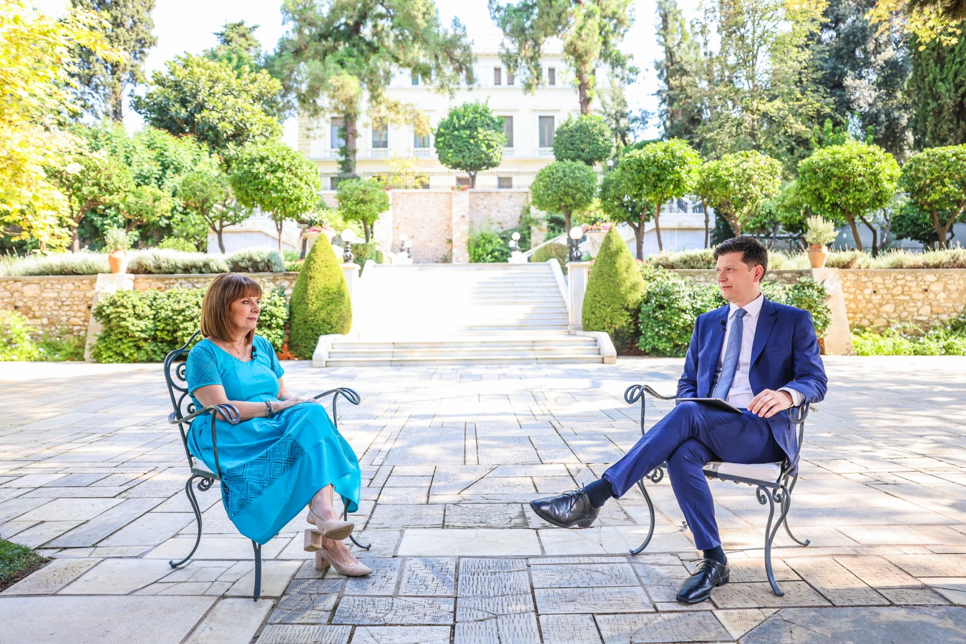 Συνέντευξη της Προέδρου της Δημοκρατίας Κατερίνας Σακελλαροπούλου στον δημοσιογράφο Απόστολο Μαγγηριάδη για την εκπομπή «Επίλογος» της ΕΡΤ1.