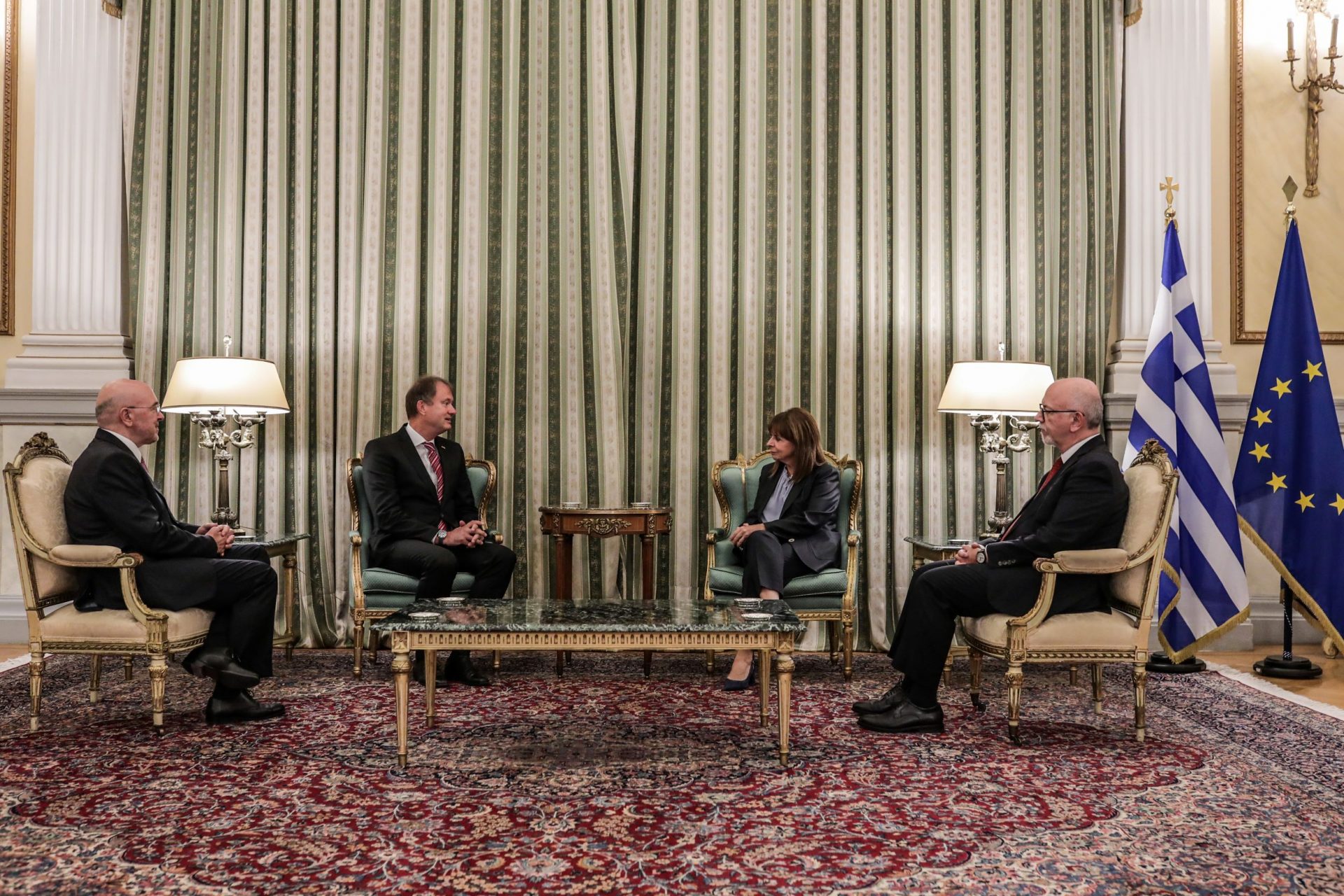 Η Πρόεδρος της Δημοκρατίας Κατερίνα Σακελλαροπούλου δέχθηκε διαδοχικά τα διαπιστευτήρια των νέων Πρέσβεων, της Δημοκρατίας της Μολδαβίας Andrei Popov, του Κράτους του Κουβέιτ Mansour Saad Al Olaimi, της Ελβετικής Συνομοσπονδίας Stefan Estermann, του Κράτους του Ισραήλ Noam Katz και του Βασιλείου της Νορβηγίας Lajla Brandt Jakhelln.
