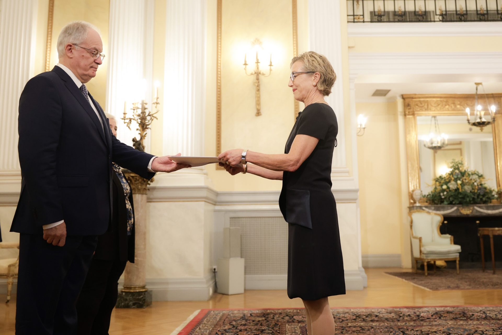 Στην τελετή επίδοσης των διαπιστευτηρίων παρέστησαν η Υφυπουργός Εξωτερικών Αλεξάνδρα Παπαδοπούλου και η Γενική Γραμματέας της Προεδρίας της Δημοκρατίας, Πρέσβης Αλίκη Χατζή.