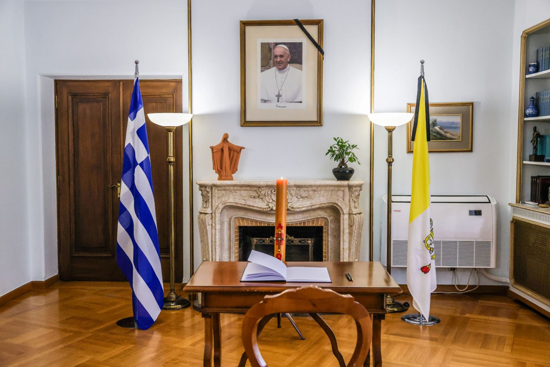 Ο Πρόεδρος της Δημοκρατίας Κωνσταντίνος Αν. Τασούλας μετέβη στην Πρεσβεία της Αγίας Έδρας στην Αθήνα και υπέγραψε το βιβλίο συλλυπητηρίων για τον εκδημήσαντα Πάπα Φραγκίσκο.